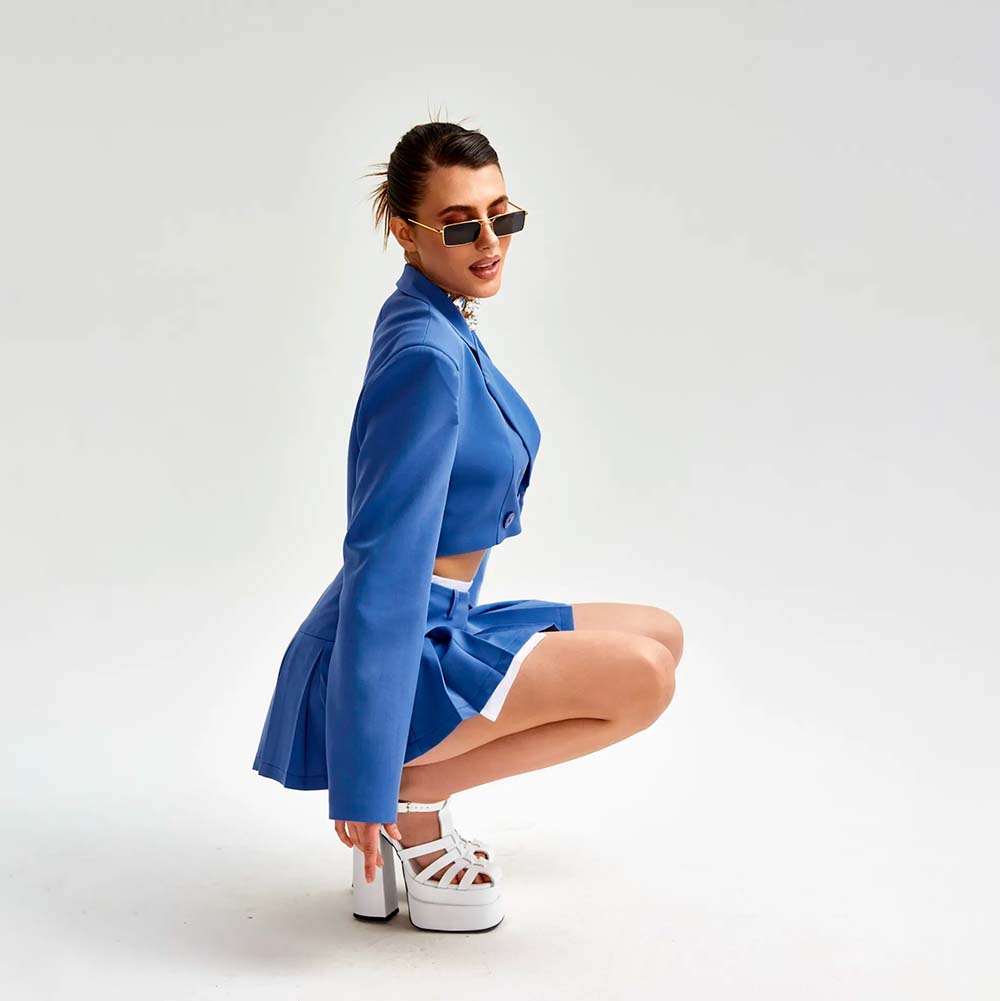 ALYSIYA PLEATED SKIRT and BLAZER SUIT SET