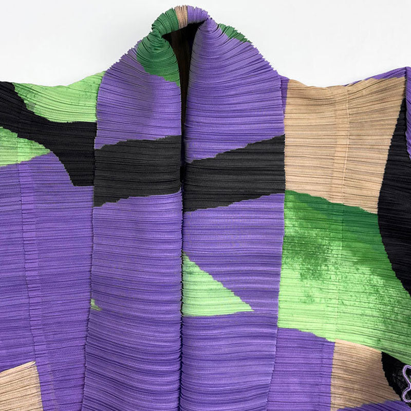 This designer midi dress offers classy style with a modern edge. Featuring an easy pullover style with geometric colorblocked print and accordion pleats throughout. a v-neckline with flowy flap cascade down the placket that is engineered to frame the face. elbow-length sleeves with beautiful ruffle details offer a hint of volume. and the ruffled trimming on both sides bring playful vibe to the straight hemline. a relaxed loose fit design. while with the matching self-tie belt further cinches and shapes the silhouette. providing an elegant look. It pairs just as well with sandals and a sun hat for a laid-back vacay look as it does with high heels for a special date-night chic. All that in one dress? Wow!