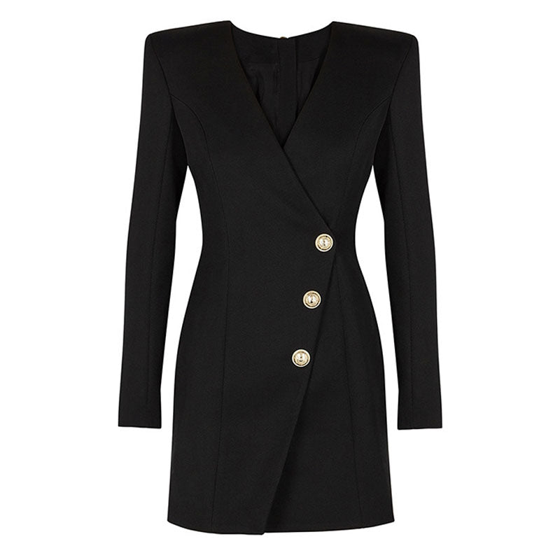Asymmetric Gold Button Single Breasted V Neck Long Sleeve Tailored Blazer