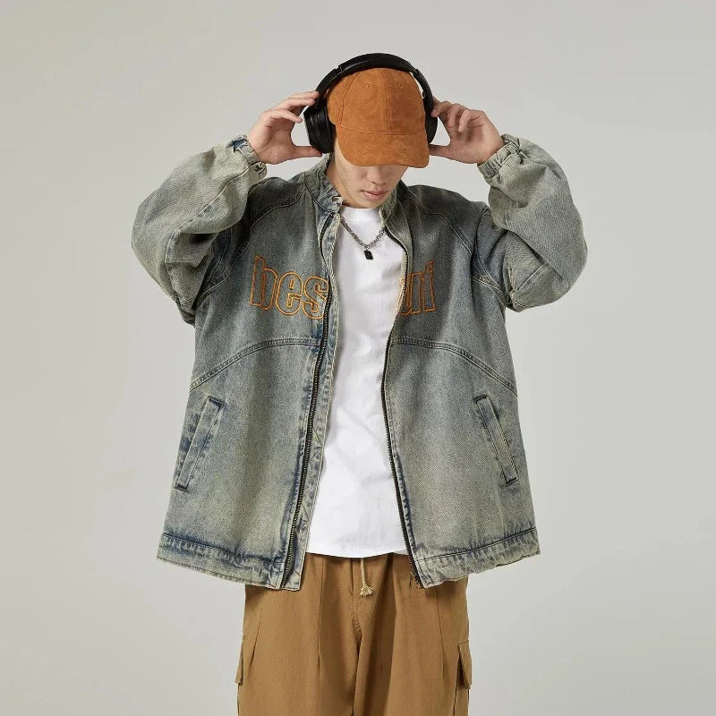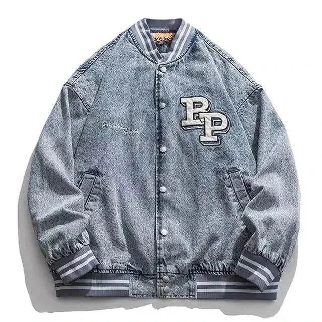 Men's Letter Embroidery, Baseball Varsity Denim Jacket