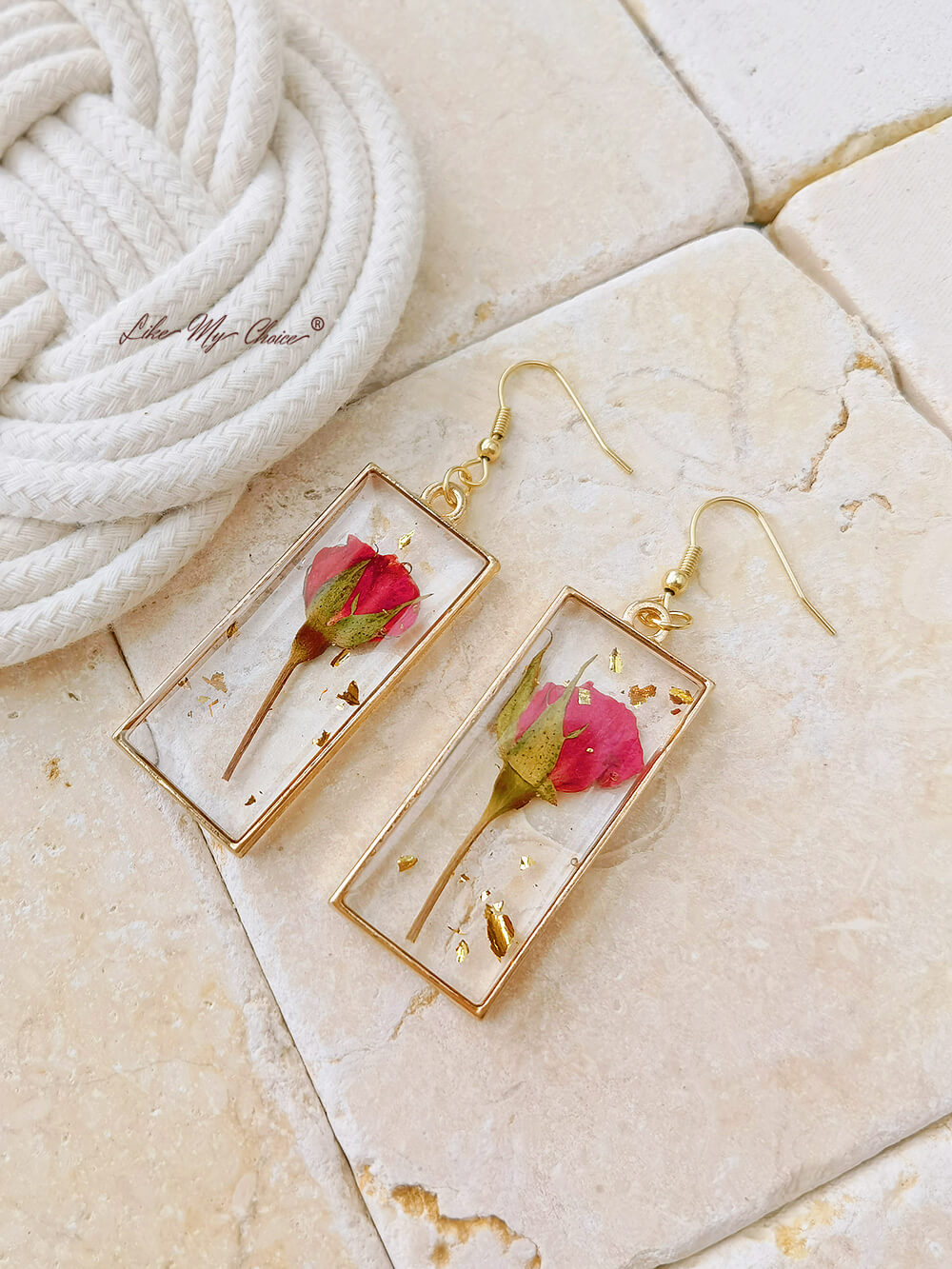 Unique translucent square shape Pressed Flower Pendant. real dried flowers preserved in resin and surrounded by frame.