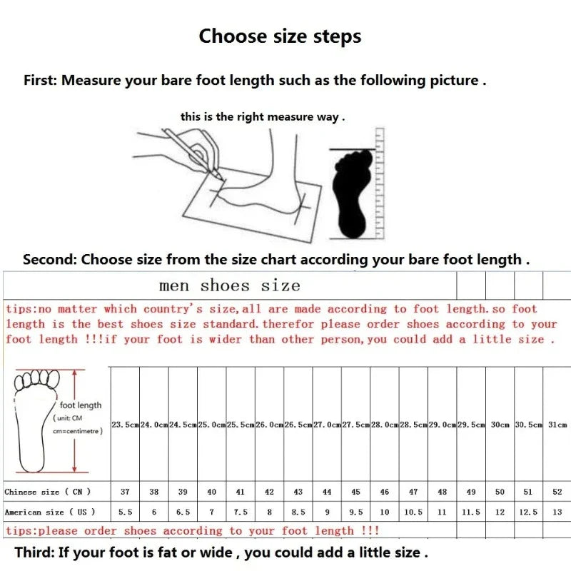 - Select the size based on the measured length. Note: Our shoes may have international sizing.