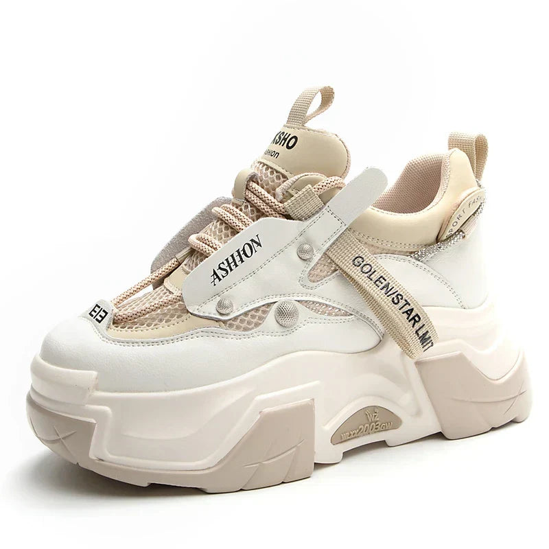 Elevate your style with our 6CM Chunky Wedge Sneakers. These lace-up air mesh shoes provide comfort and breathability while adding 6CM of height to your look. Perfect for any occasion. these sneakers are a must-have for any fashion-forward woman.