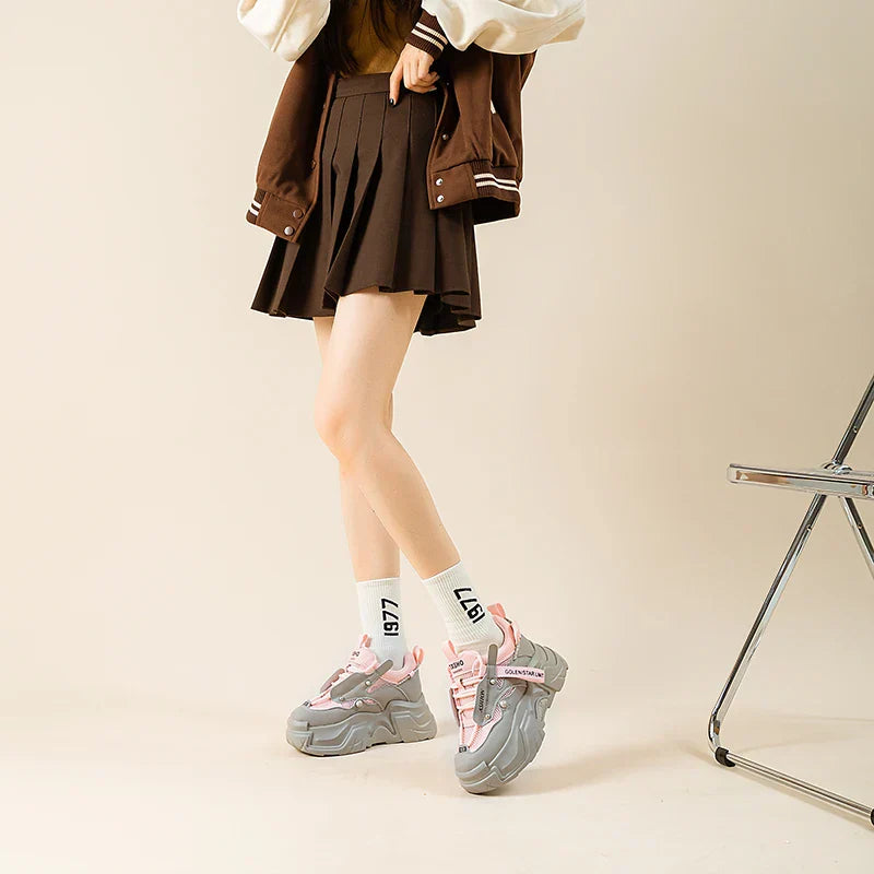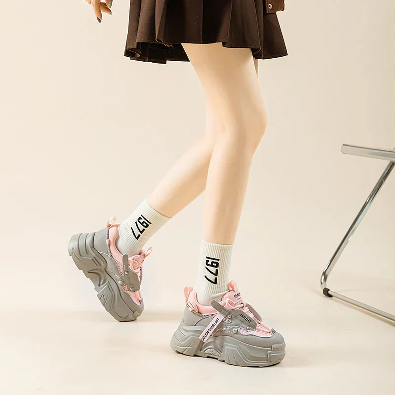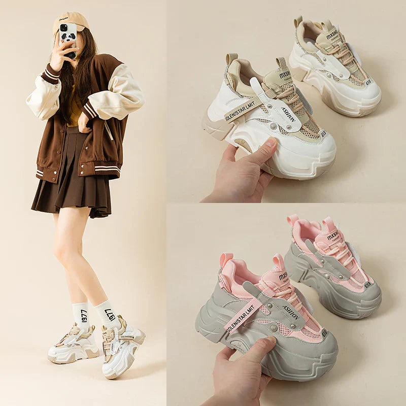 6CM Chunky Sneakers: Lace-Up Air Mesh Shoes for Women