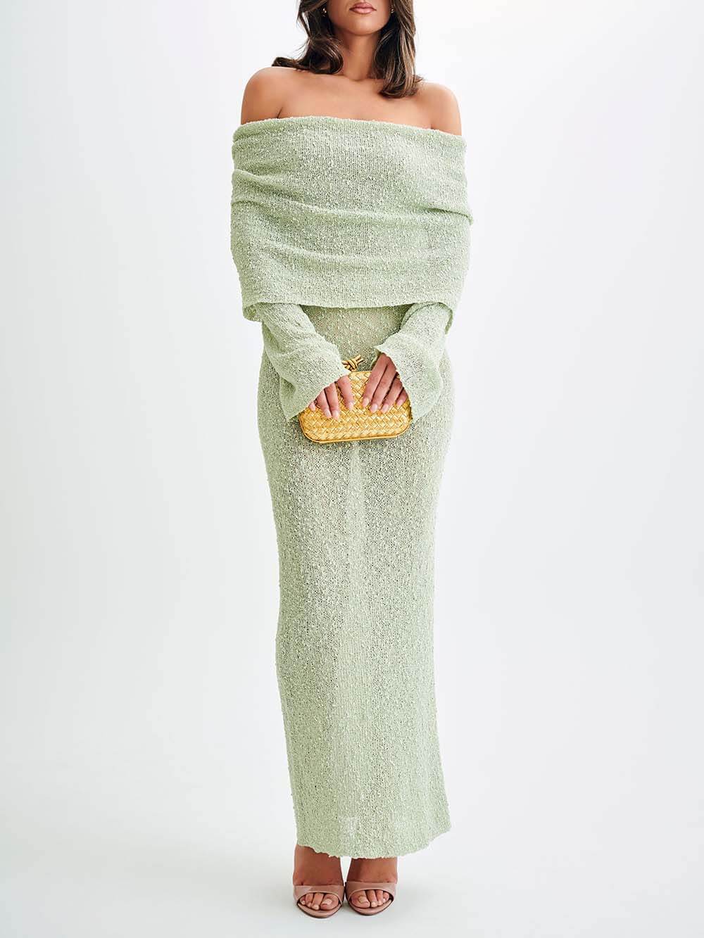 Classic Draped Off Shoulder Stretch Vacation Maxi Dress