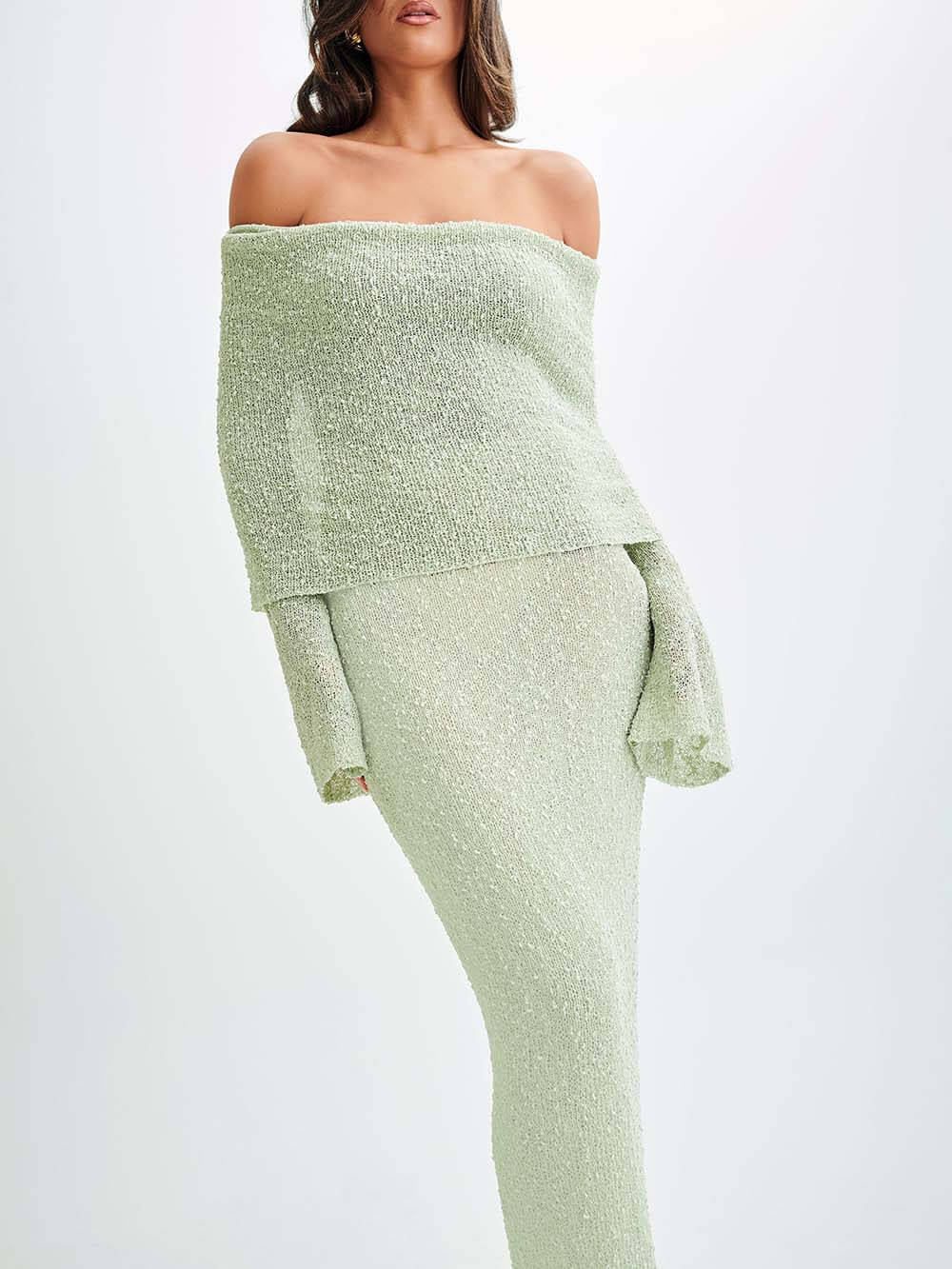 Be stylish and comfortable in our classic draped off-the-shoulder stretch resort maxi dress.