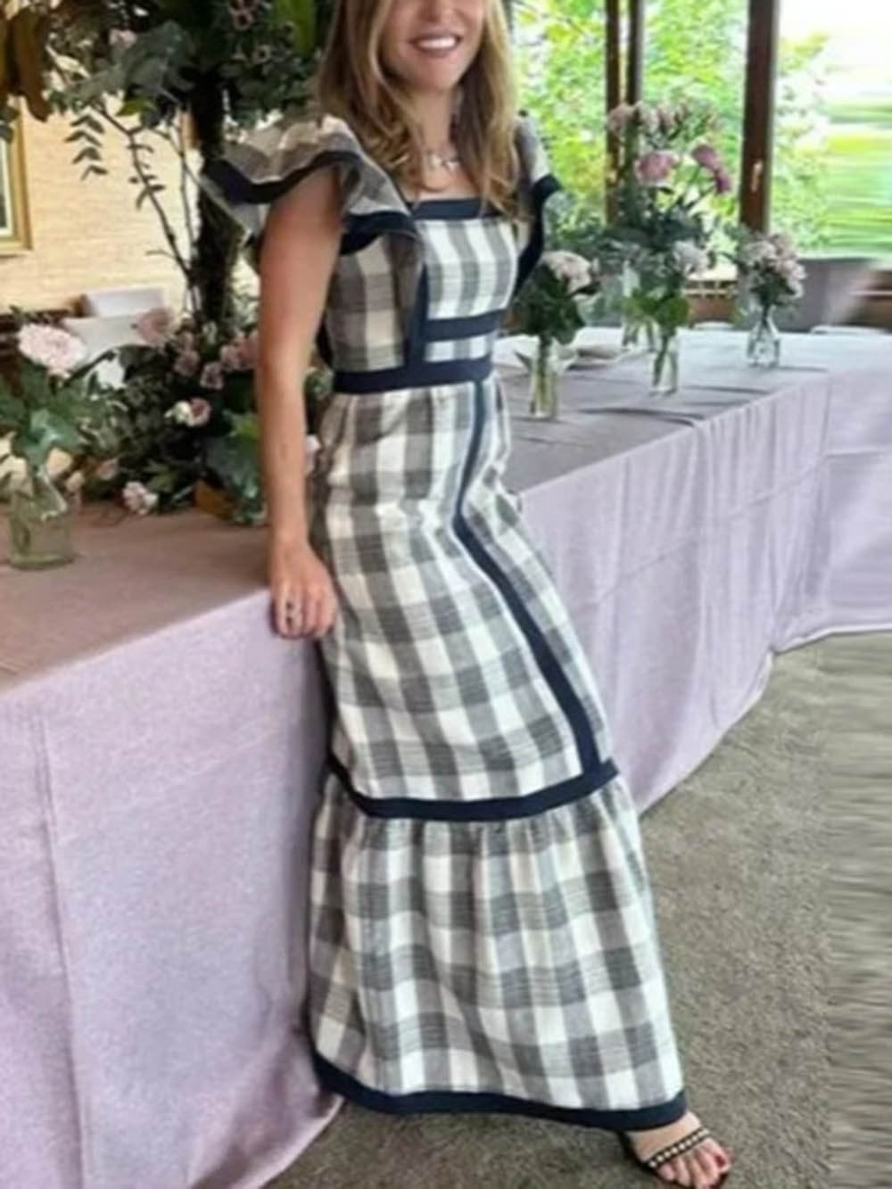 Made from premium fabric. this dress is soft and breathable for all-day wear. The unique check print on this dress adds a touch of personality. while the fitted fit ensures a comfortable fit.