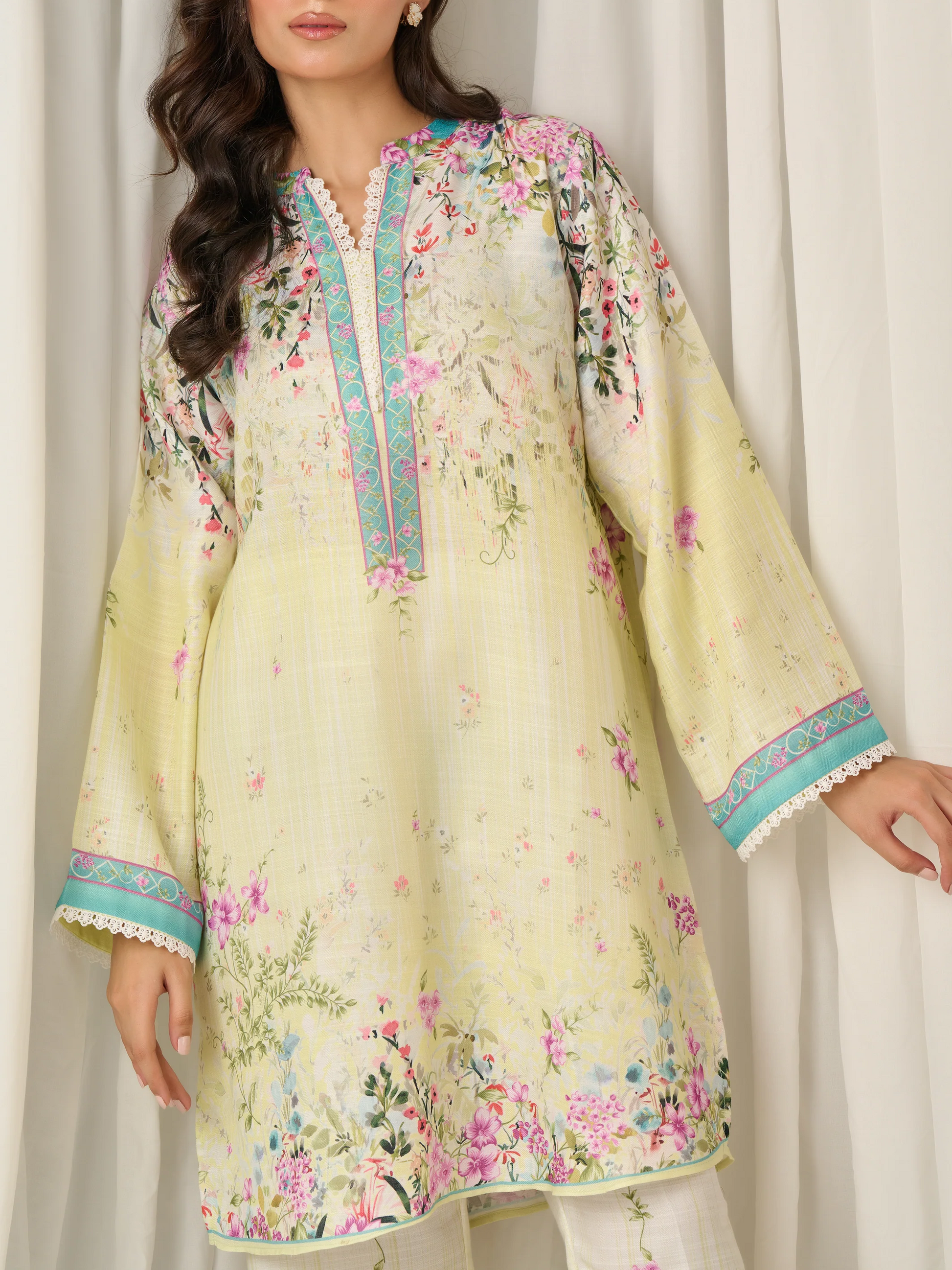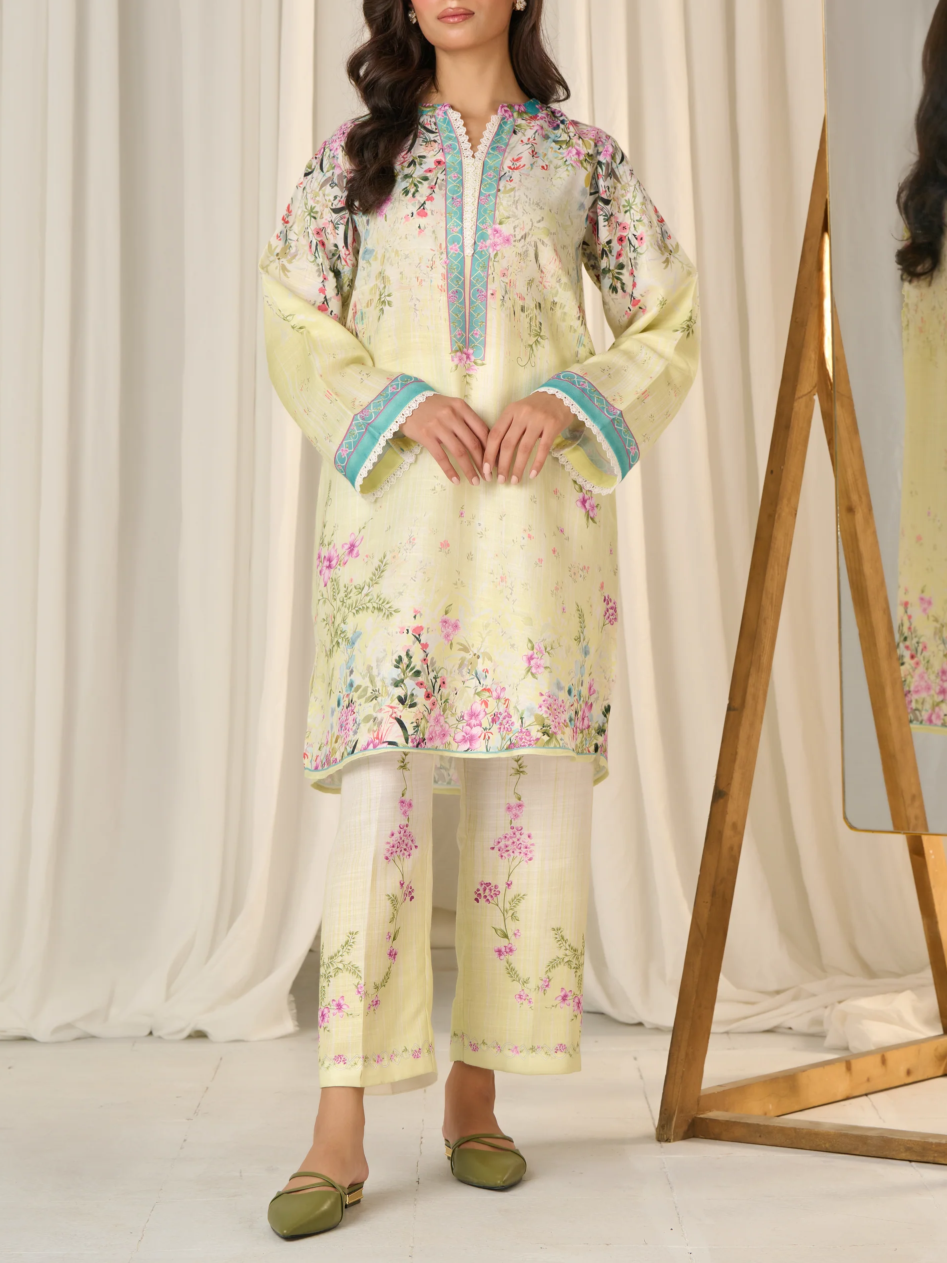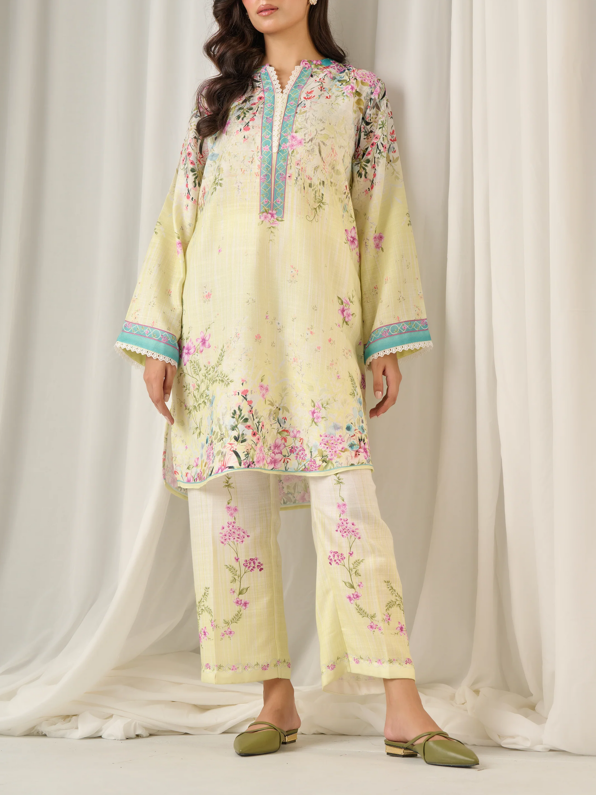 This set in soft pastel yellow is a spring - summer dream. Perfect for garden parties or relaxed brunches. it brings a fresh. feminine charm to your wardrobe.