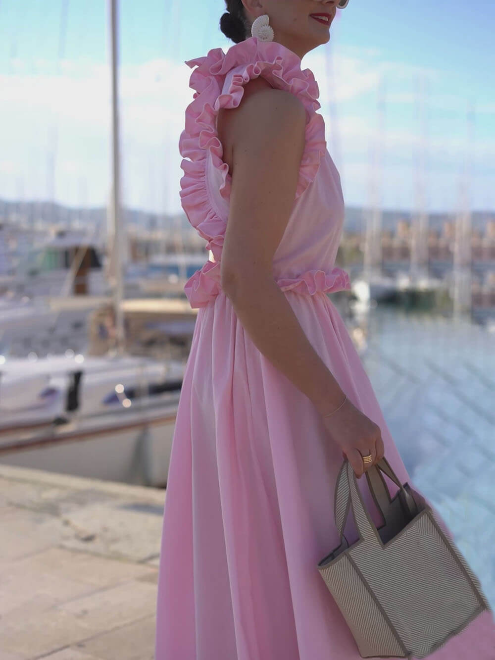 Stay stylish and comfortable in our exquisite ruffled Martinique pink dress.