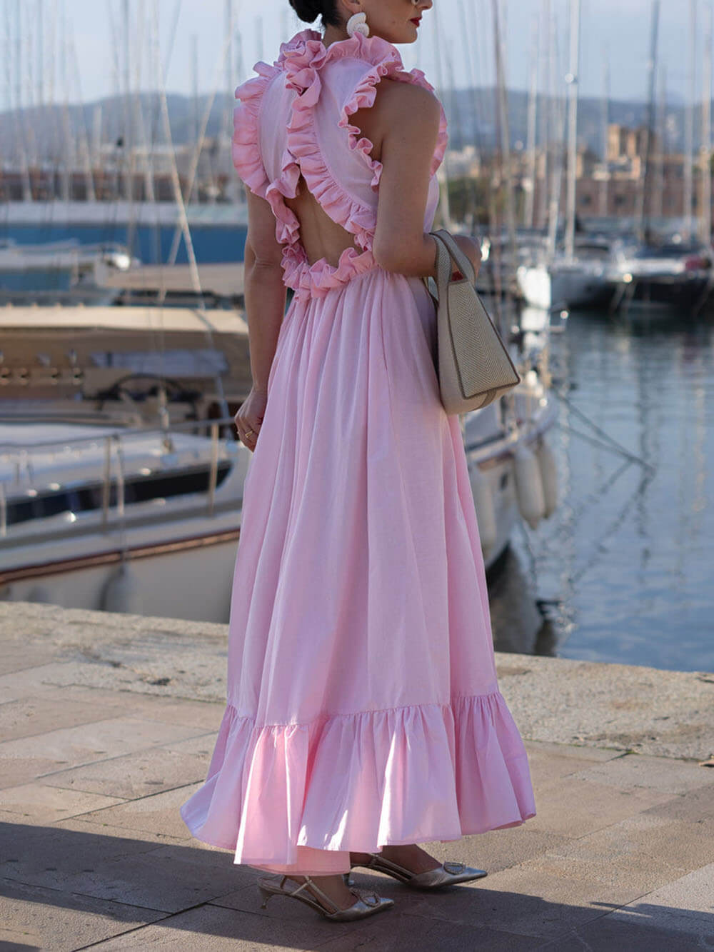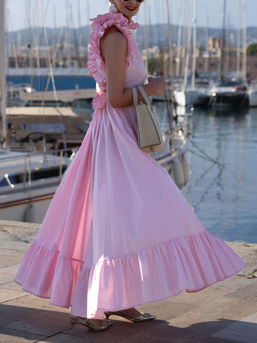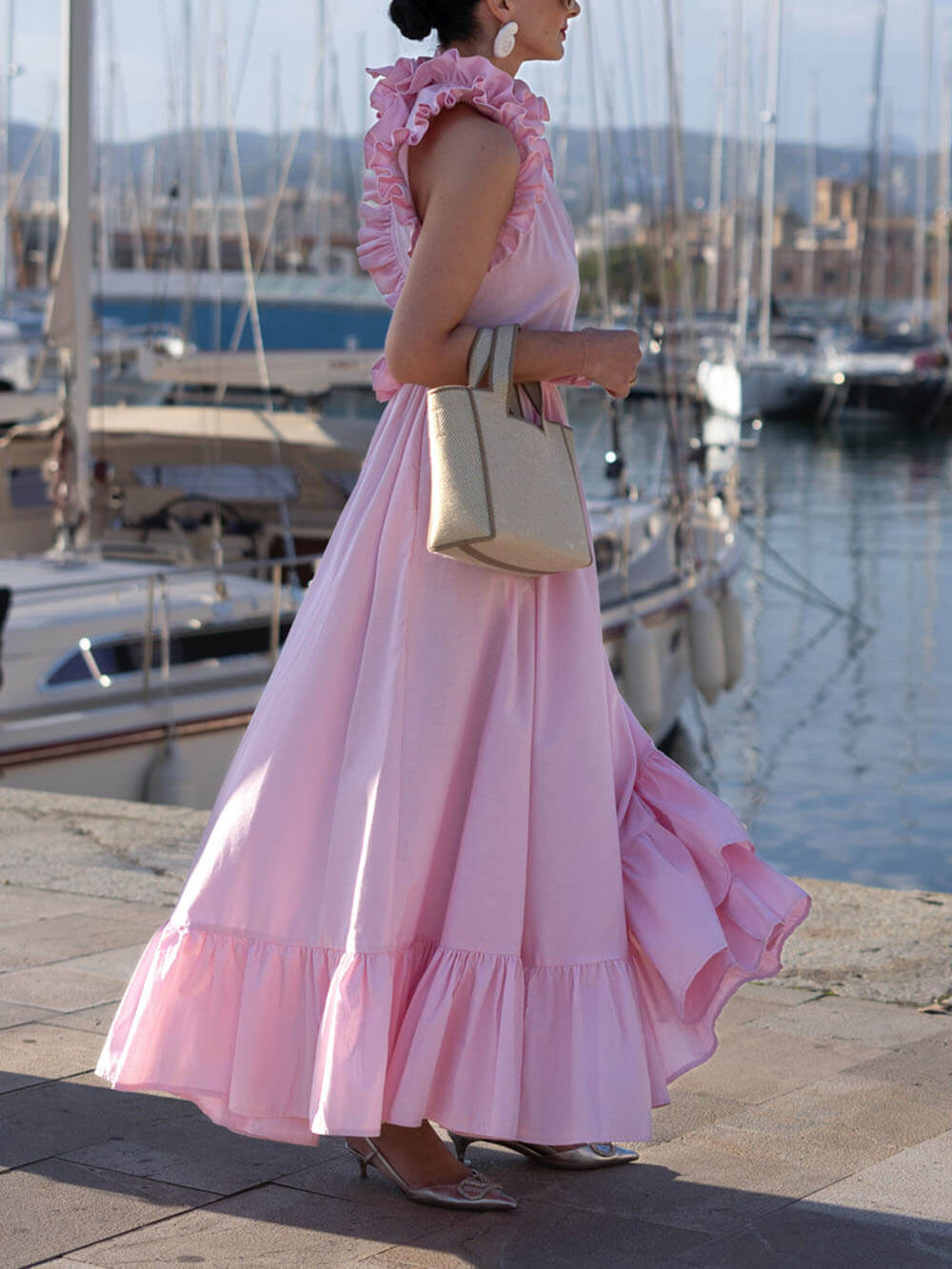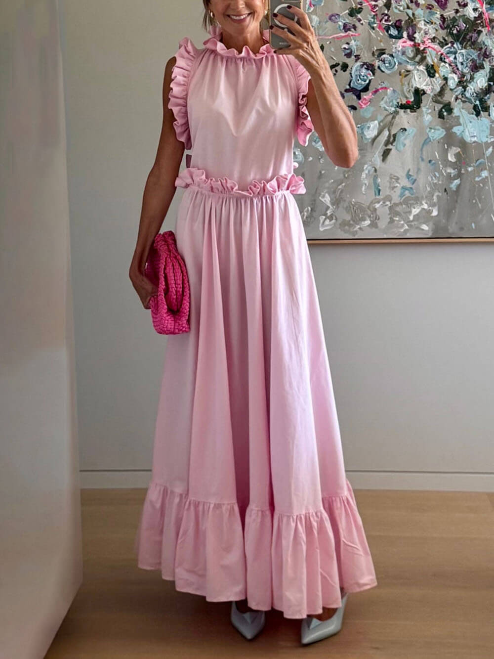 Delicate Ruffled Martinique Pink Maxi Dress