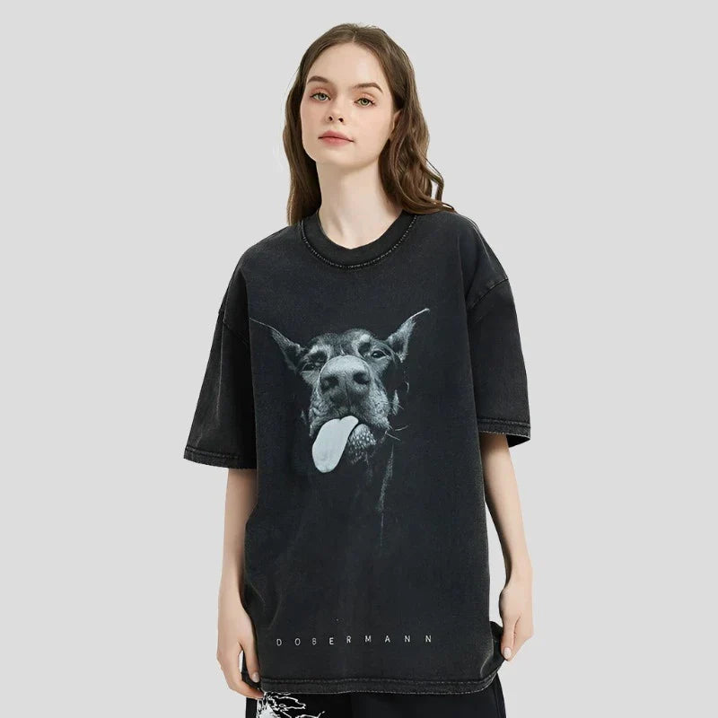 Elevate your casual wardrobe with the Oversized Doberman T Shirt for Women. This Oversized Doberman T Shirt is perfect for summer with its short sleeves and breathable cotton fabric. Designed in a hip-hop style. it features a bold print of a Doberman. making it a standout piece. The O-Neck collar and regular sleeve style ensure comfort and ease of wear. while the broadcloth fabric adds durability. Whether you're out for a casual day or hanging out with friends. this Oversized Doberman T Shirt will keep you stylish and comfortable.