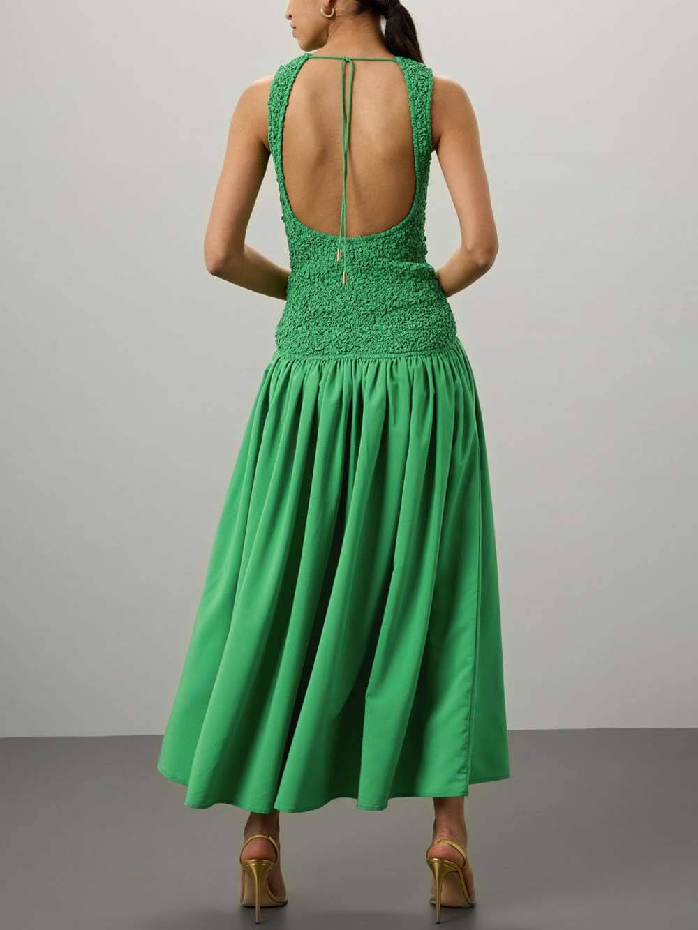 Wear stylish and comfortable with our Fantasy Pleated Panelled Halter Dress.