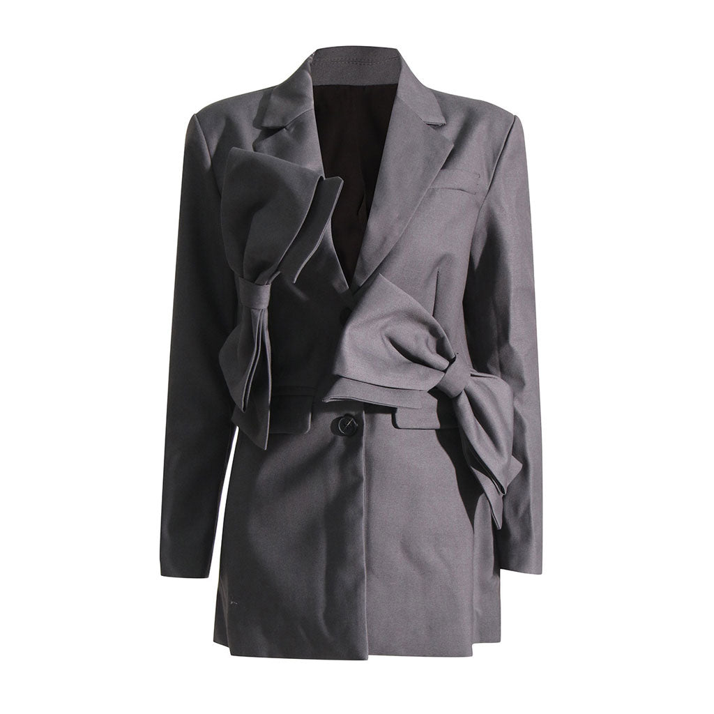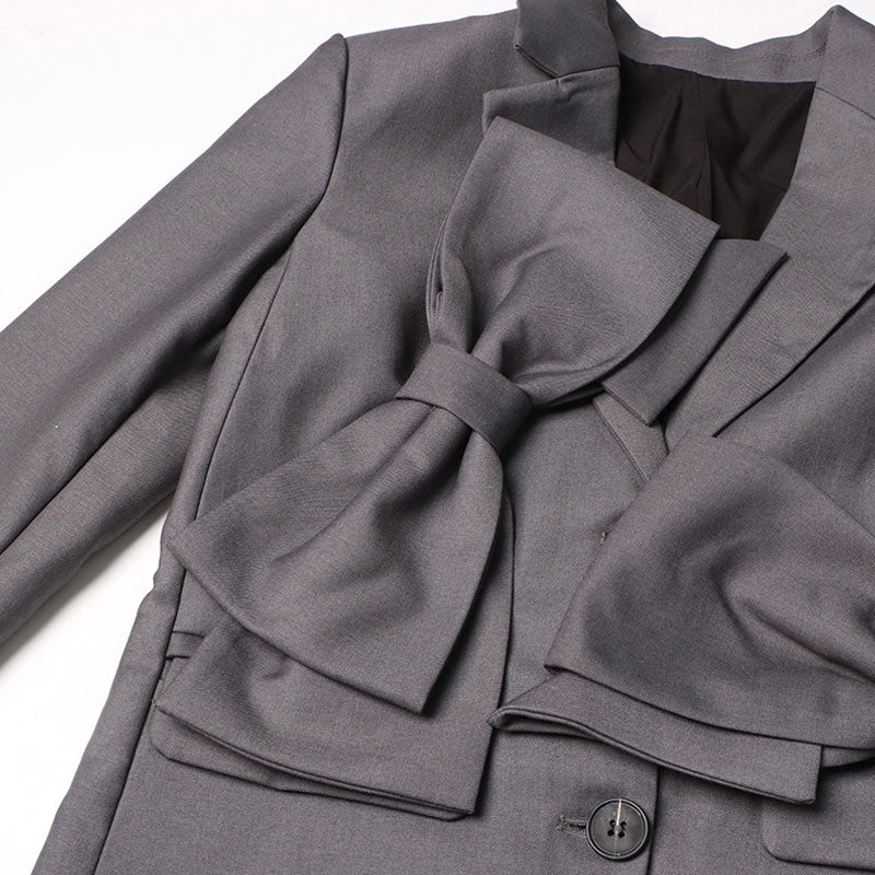 Edge Big Bow Detail Lapel Collar Shoulder Pad Long Sleeve Single Breasted Blazer