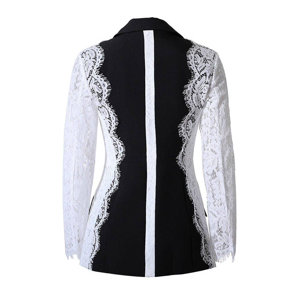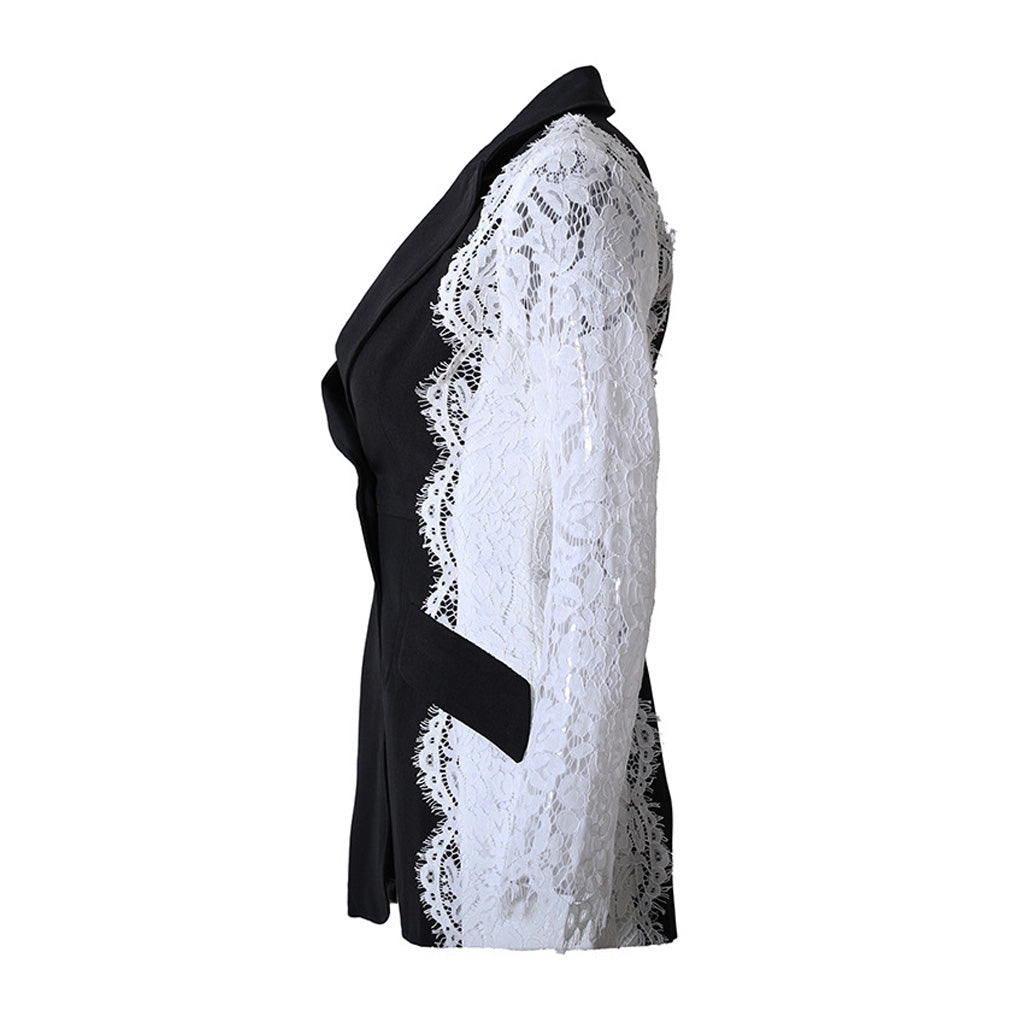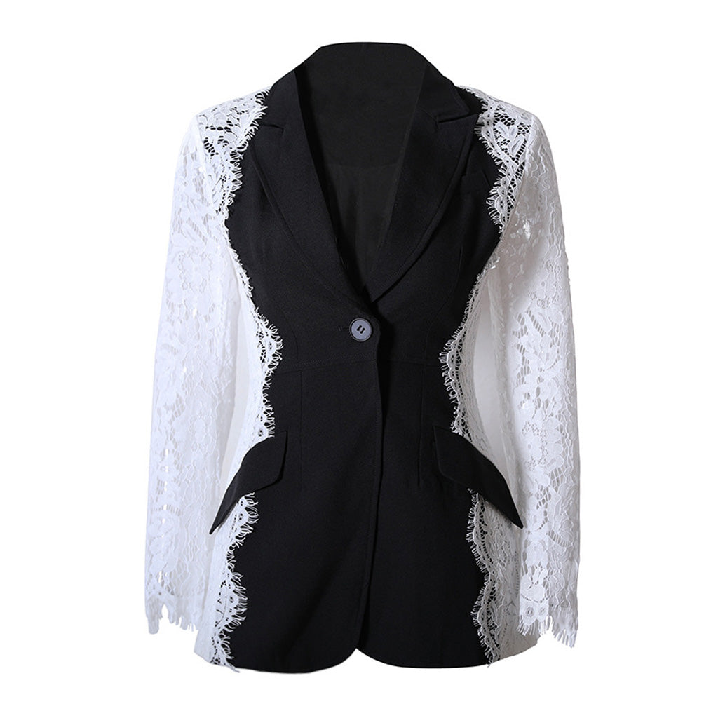 Edgy Contrast Lace Sleeve Lapel Collar Single Breasted Tailored Blazer