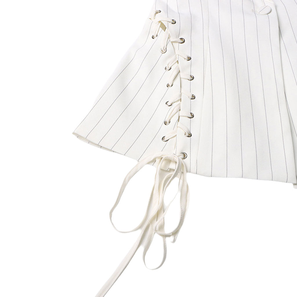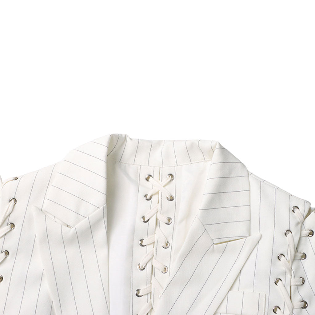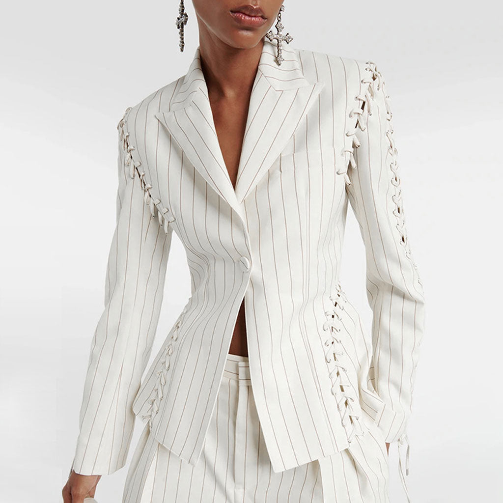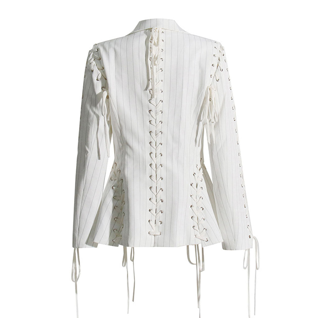 Edgy Lace Up Striped Print Lapel Collar Single Breasted Tailored Blazer
