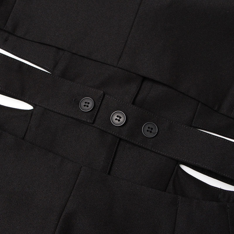 Edgy Notch Lapel Belted Shoulder Pad Cutout Single Breasted Long Tailored Blazer