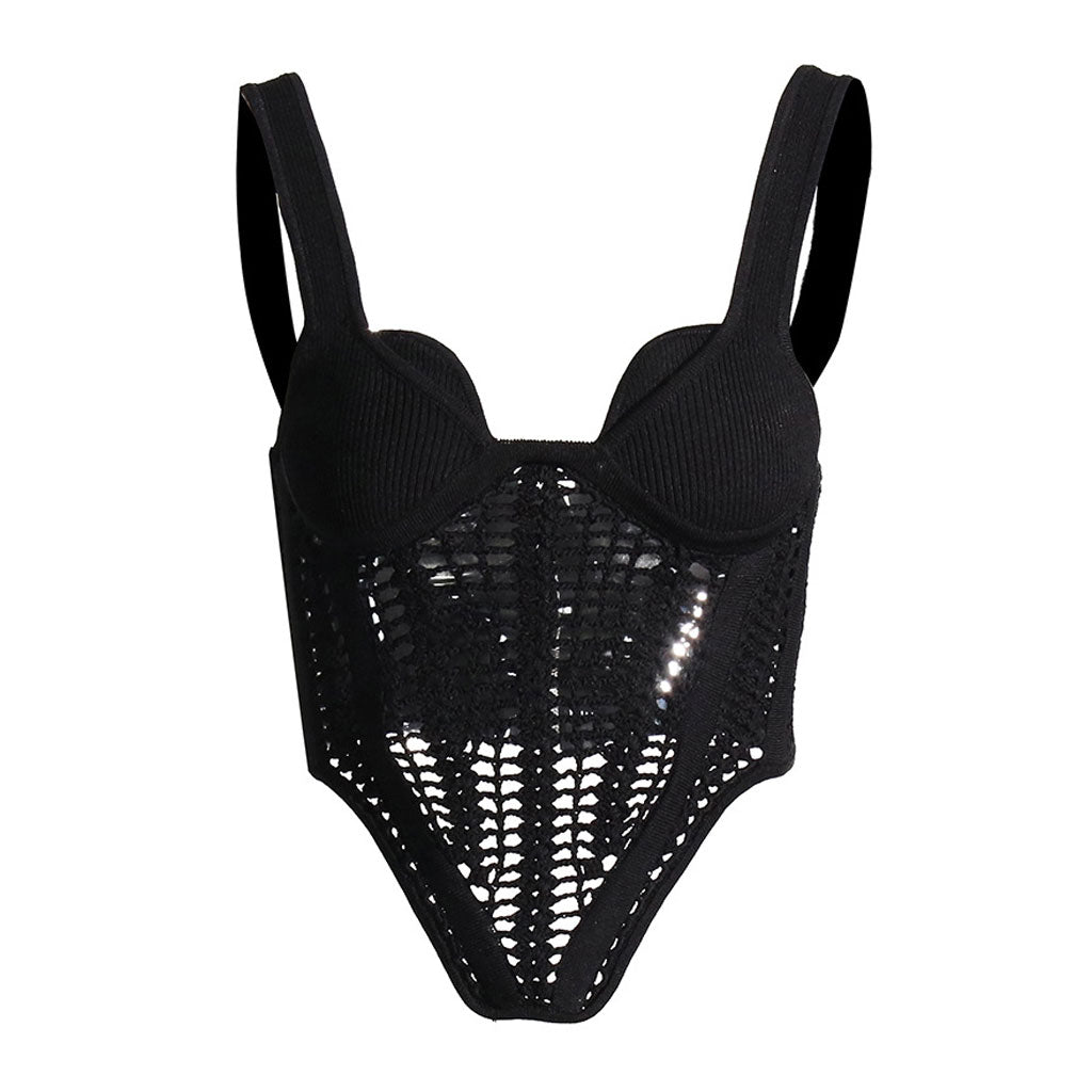 Edgy Sweetheart Neck Suspender Strap Crochet Knit Corset Crop Top