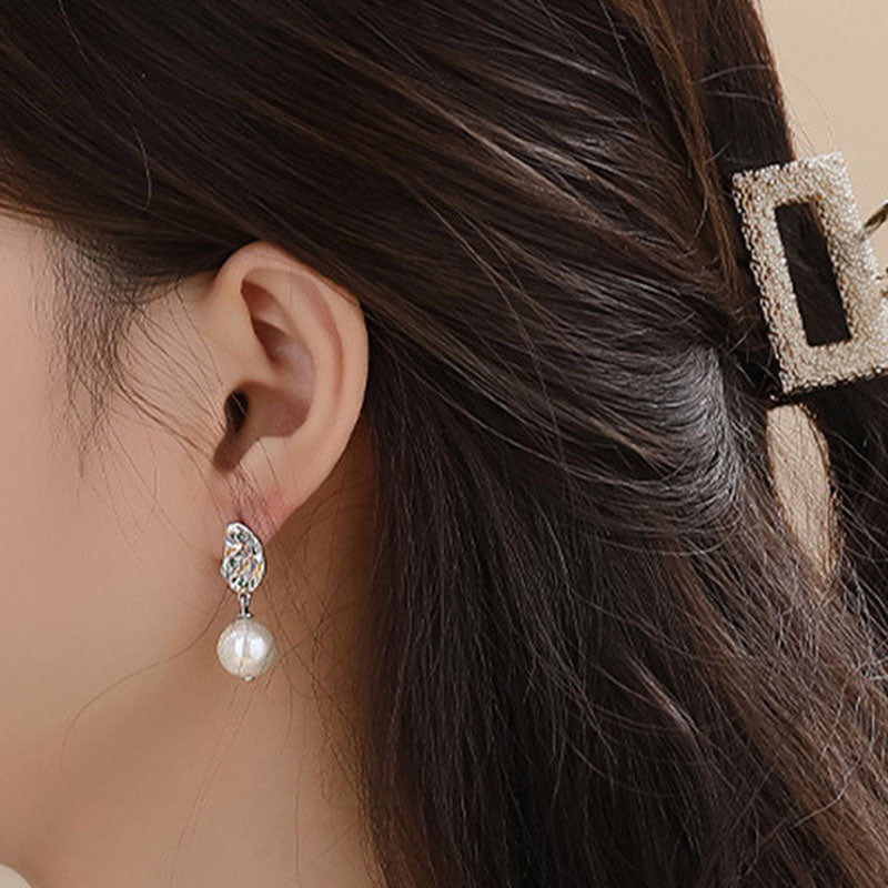 Emerald Cubic Zirconia Hammered Block Baroque Pearl Drop Earrings