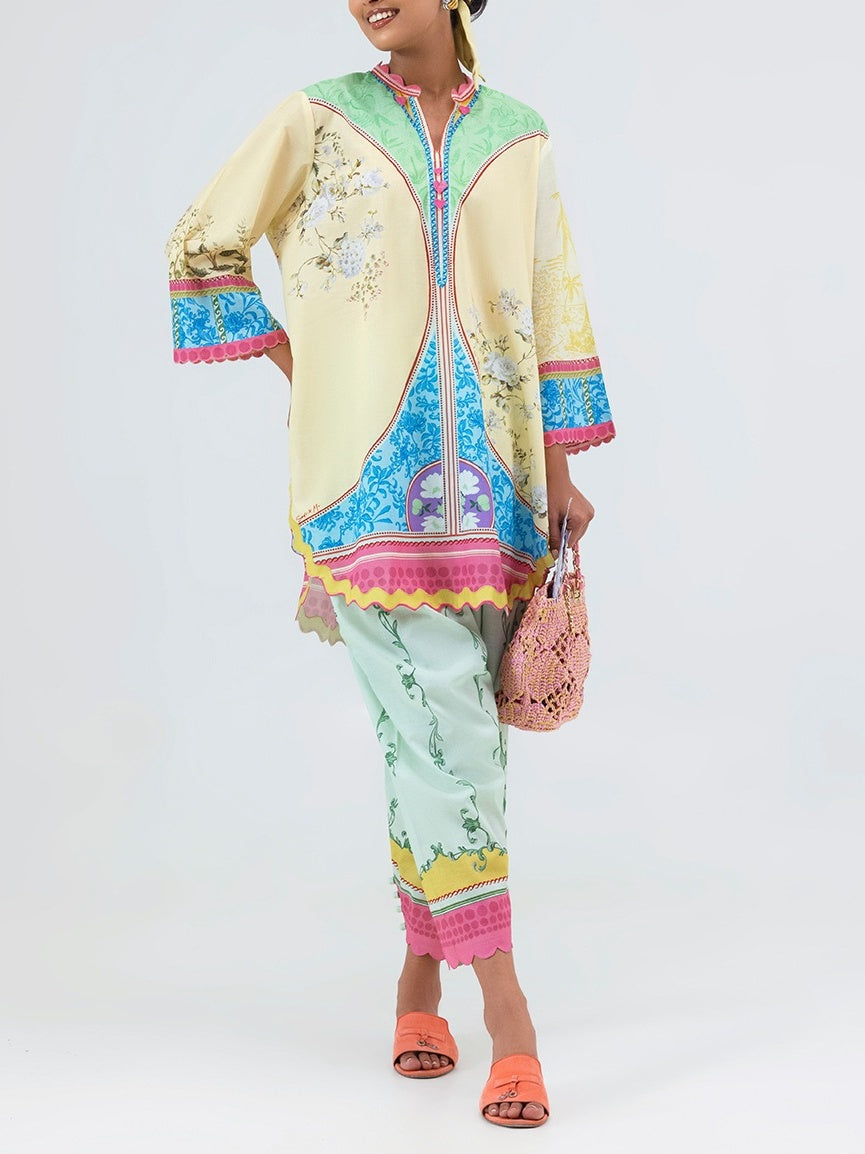 Floral Scallop Details Pastel-Toned Ethnic Co-ord Set
