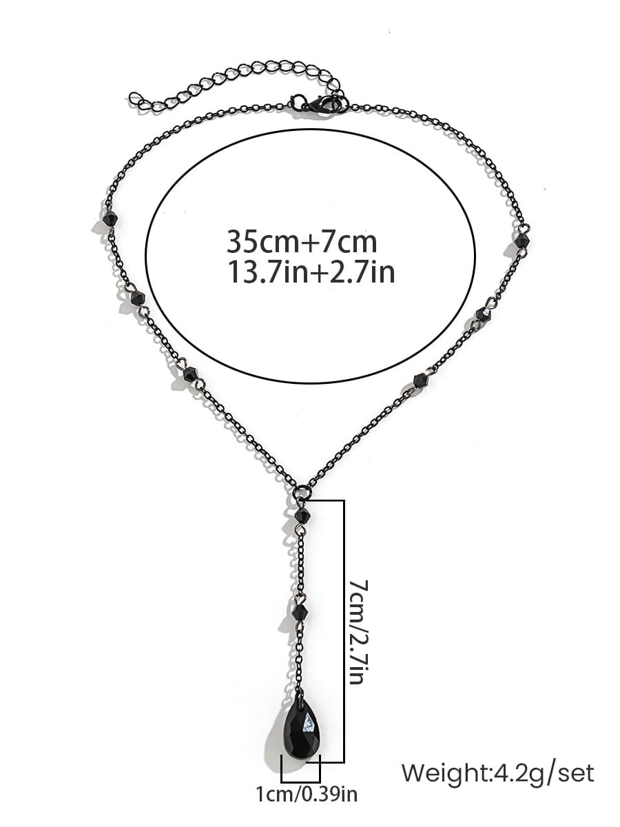 Gothic Black Teardrop Crystal Chest Chain Necklace