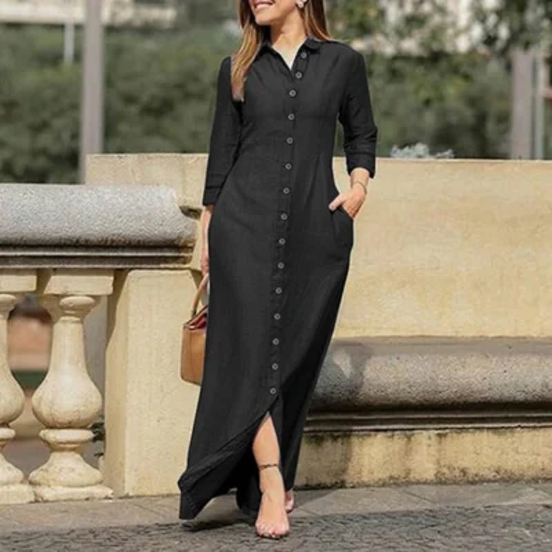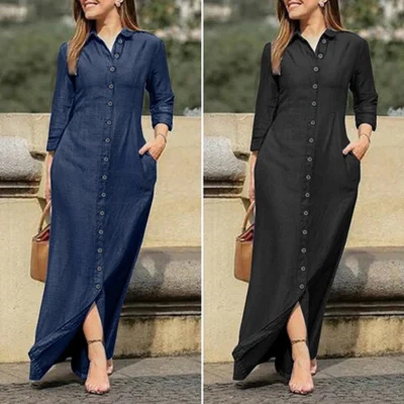 Our women denim dresses are very elegant. fashion. simple and casual loose. suitable for all seasons. You can wear this shirt dress as a coat with a simple t-shirt and jeans inside to create a stylish street look. You can also wear it as a maxi dress. It is very suitable for most people. Skin-friendly. similar to cotton and linen. very comfortable to wear. Our dress is very noticeable for daily wear. business. work. date. school. travel. party. street shooting. honeymoon. shopping. nightclub. etc. It is an essential fashion item in your wardrobe.