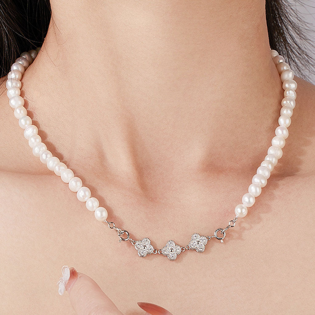 IT IS BAROQUE Freshwater Pearl Cubic Zirconia Clover Smile Necklace