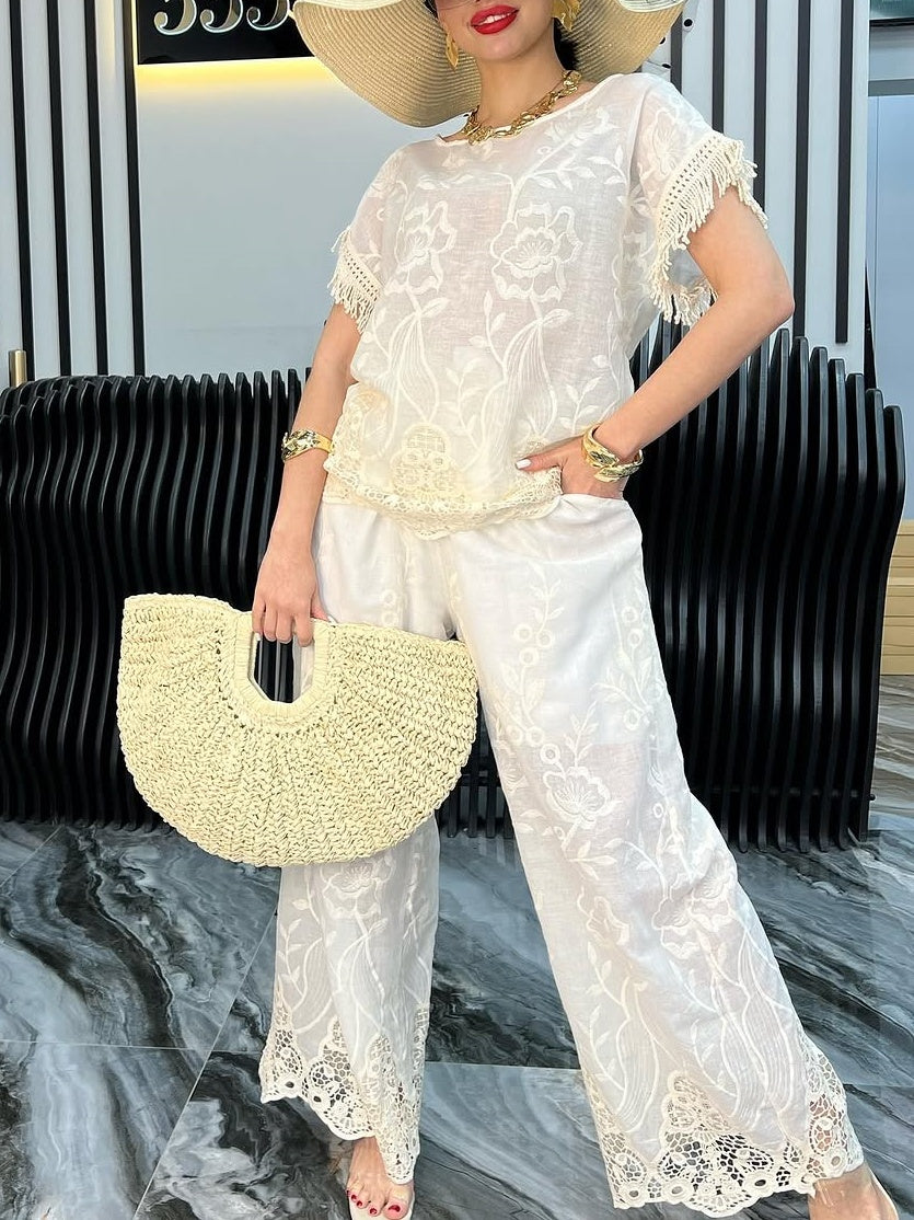Lace Crew Neck Floral Top