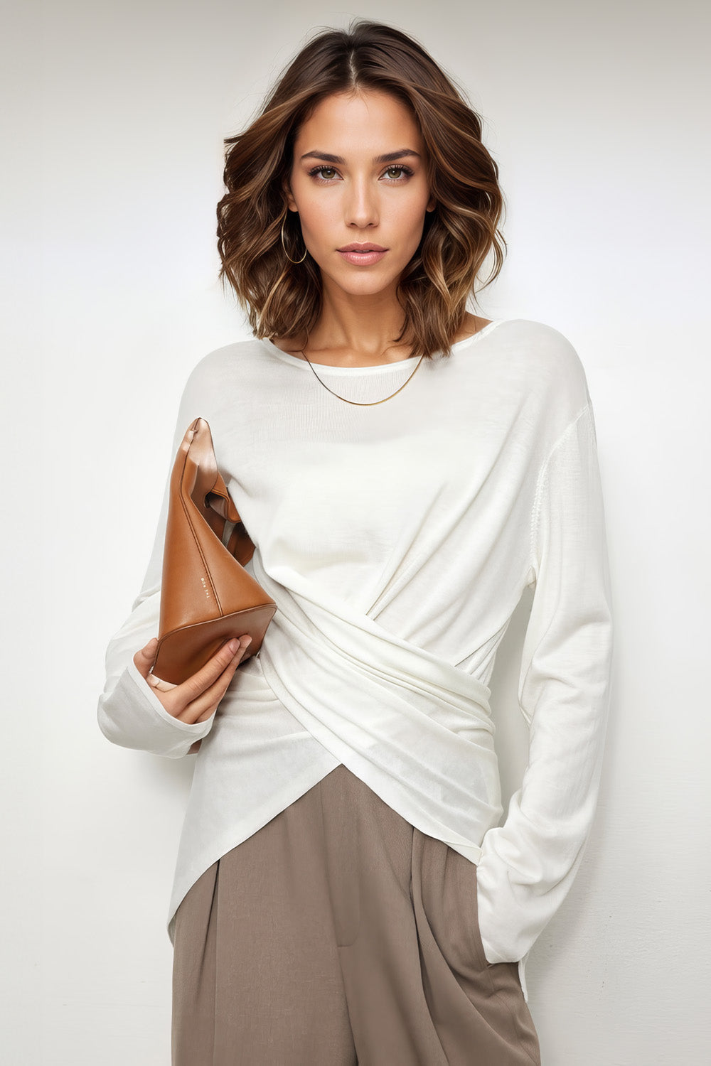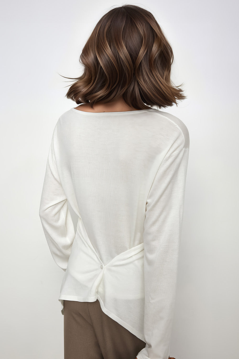 Long Sleeve Top with Criss Cross Detail - White