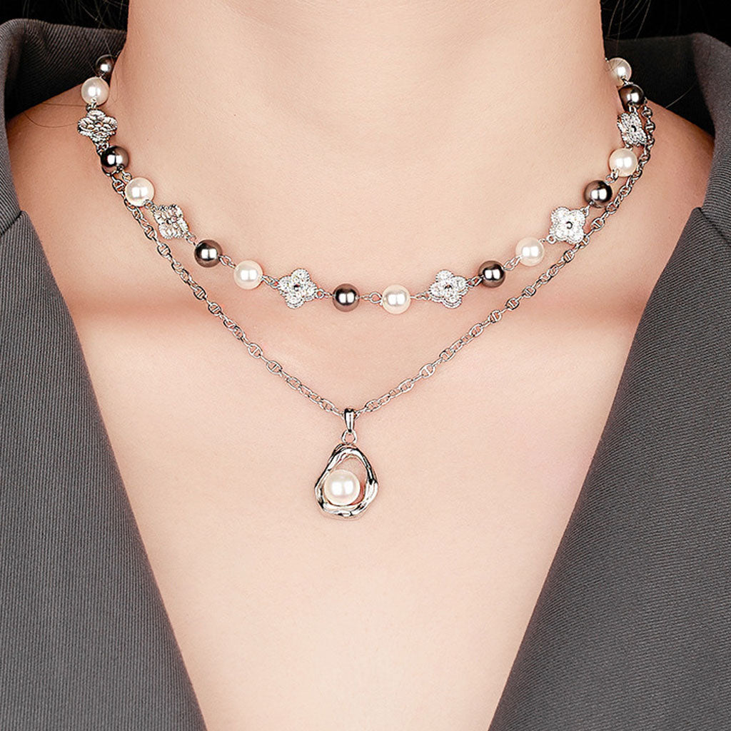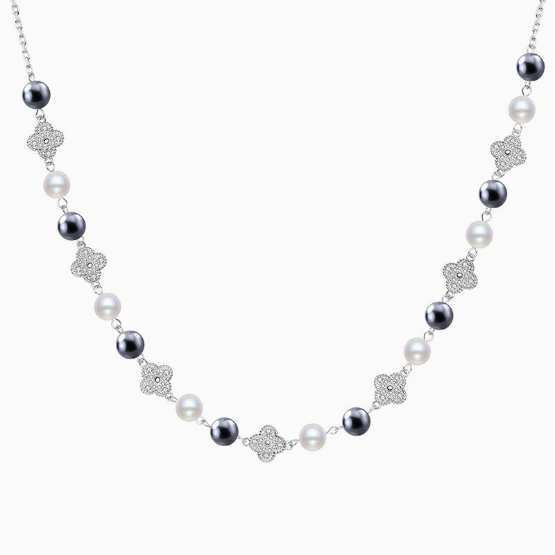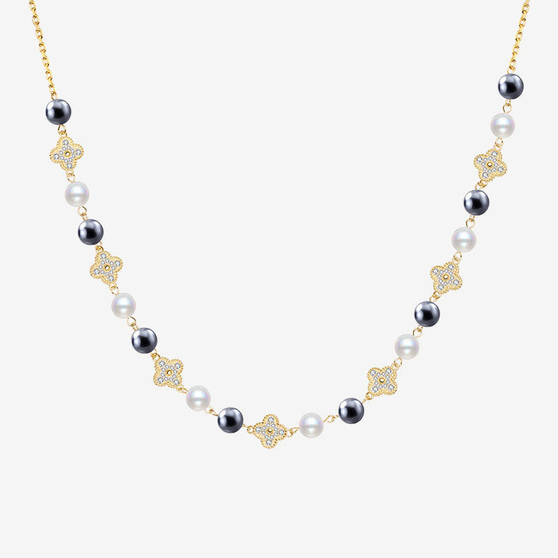 It's love at first fit. Our dainty designer clover necklace is a luminous adornment. With its opulent blend of two-tone imitated pearls and shimmering covers. it exudes an air of luxury and sophistication. Freely adjust the bolo cable chain. suitable for wearing singly or stacked.