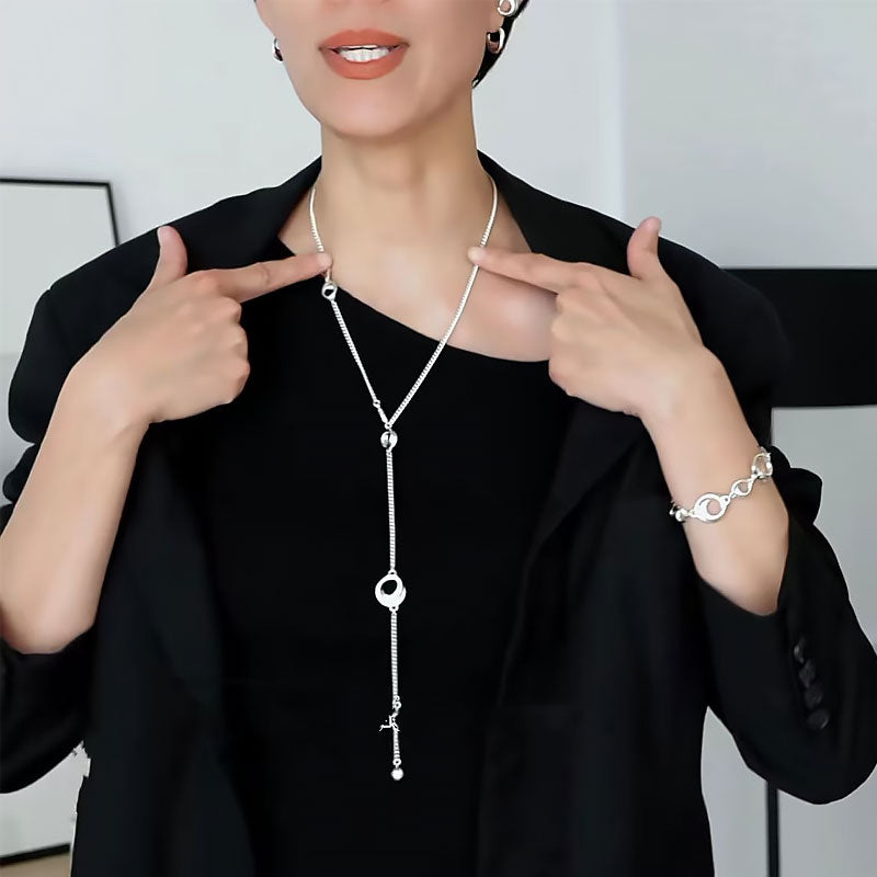 Different sizes of lustrous open hoops are strewn throughout this ultra-delicate designer curb chain necklace. designed in a wrapable length. It is an all-match fashion masterpiece you've been looking for. You can wear it long. shorten it. or double it up for an effortless chic look.