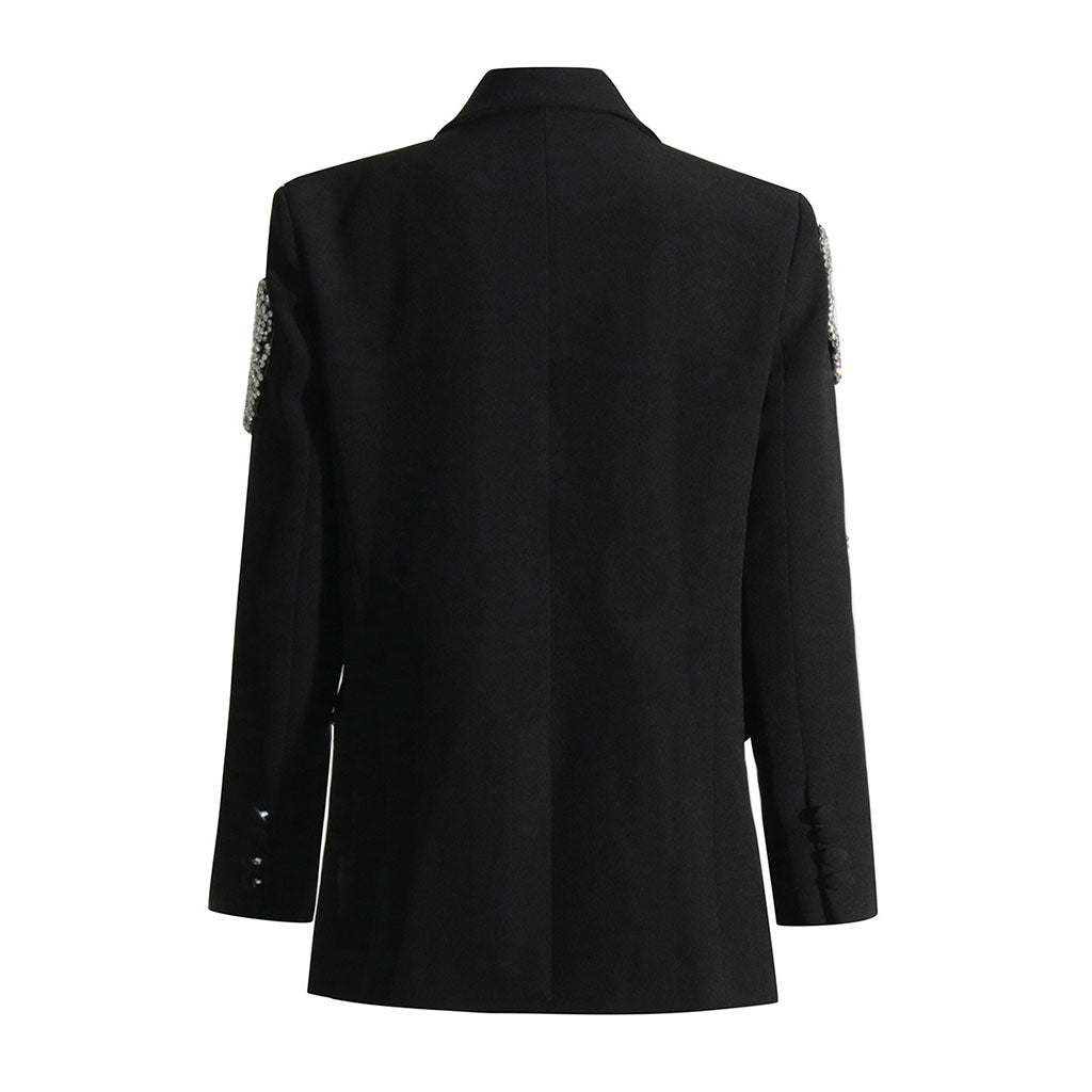 Luxury Crystal Bow Embellished Lapel Collar Single Breasted Blazer