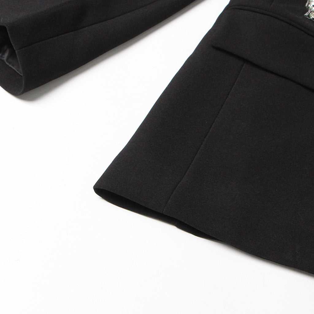 Available in classic black shade. this Luxe's designer blazer is adorned with faceted rhinestones in large bow shape that encrusted on the sleeves. making it the outer wear that you'll never put back in the closet. Featuring lapel collars. single breasted closure and two flap pockets to the front. The roomy fit ensures comfortable experience when you putting it on. It looks amazing when it paired with fitted pants and heels.