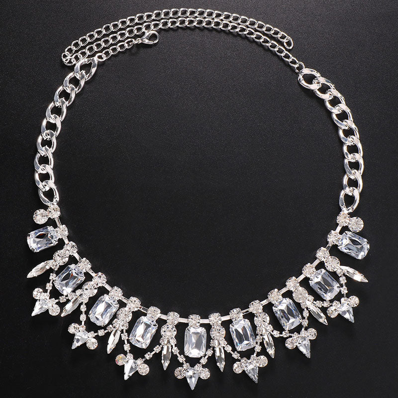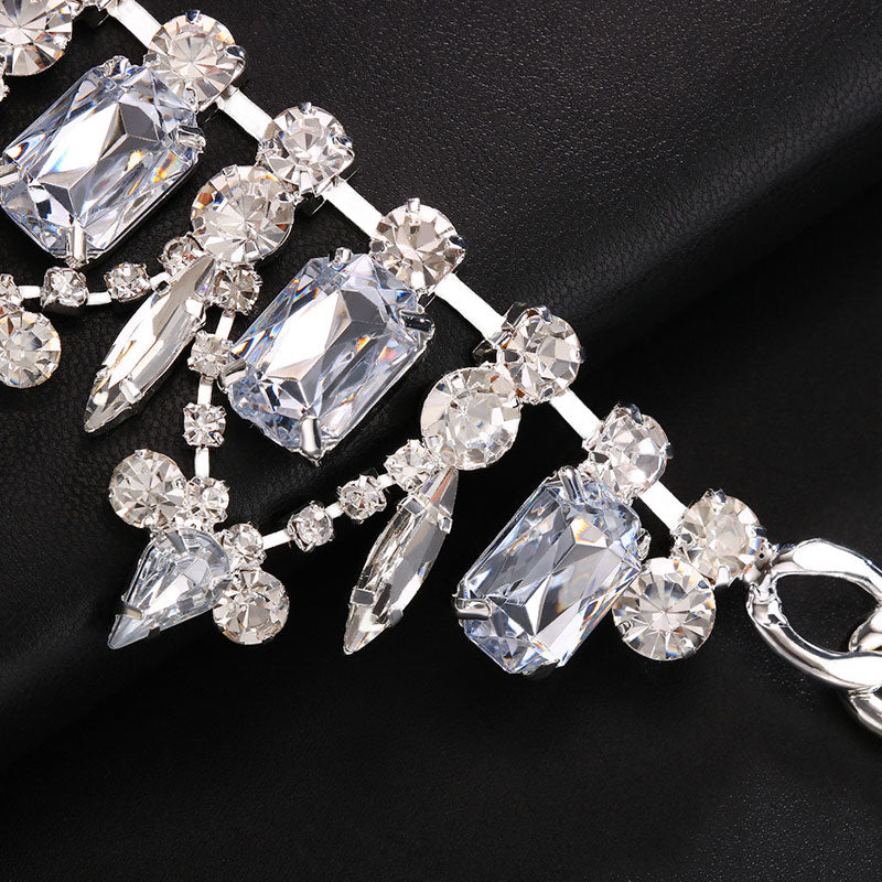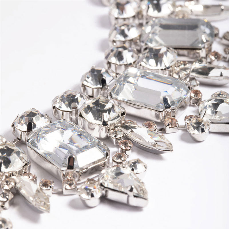 Luxury Gemstone Crystal Embellished Collar Necklace - Silver