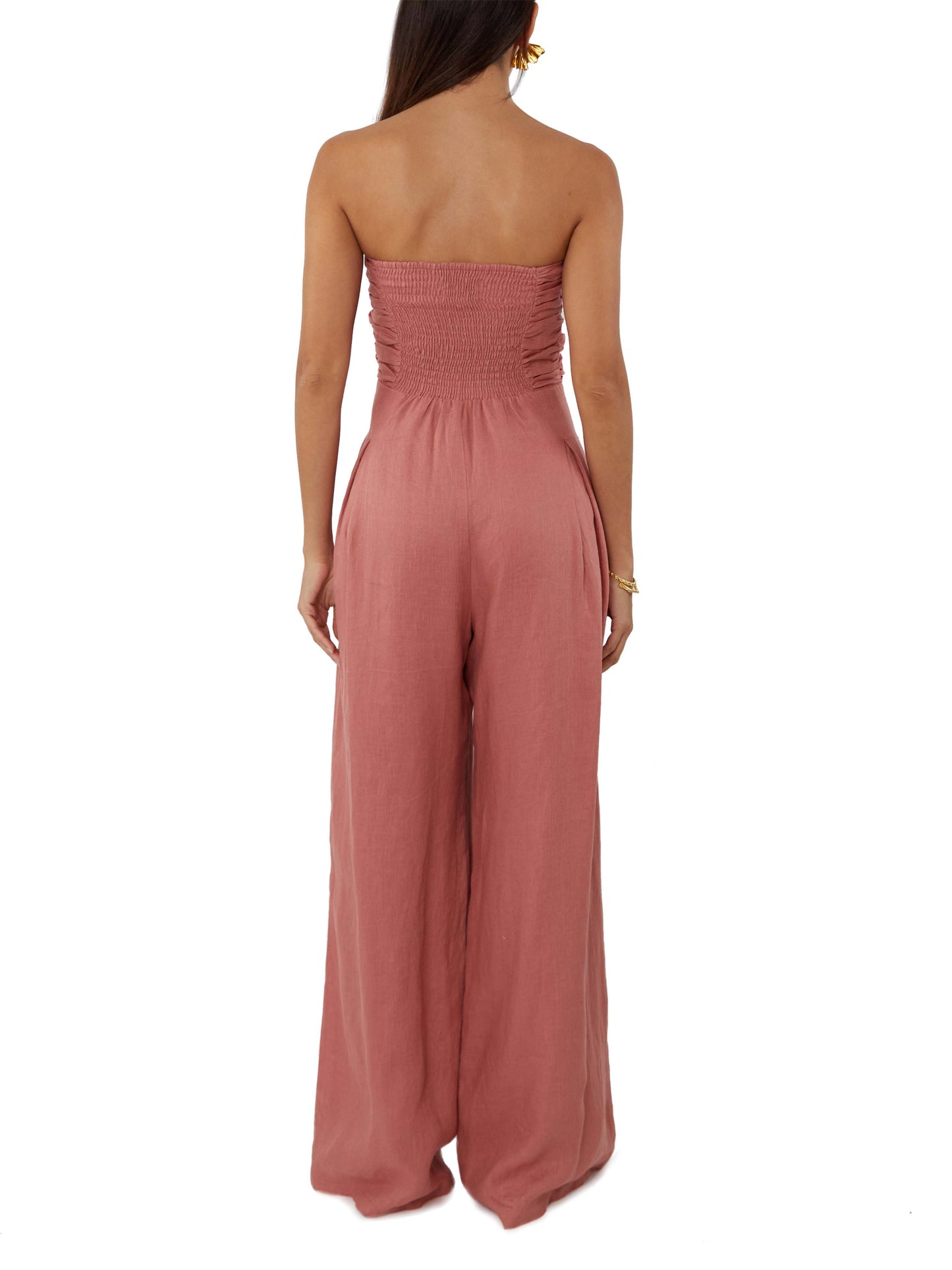 Stay stylish and comfortable in our modern and stylish bandeau pleated jumpsuit.