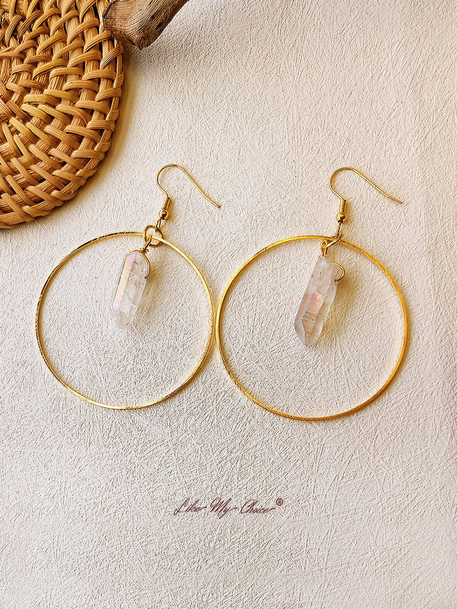 Natural Crystal Hoop Earrings