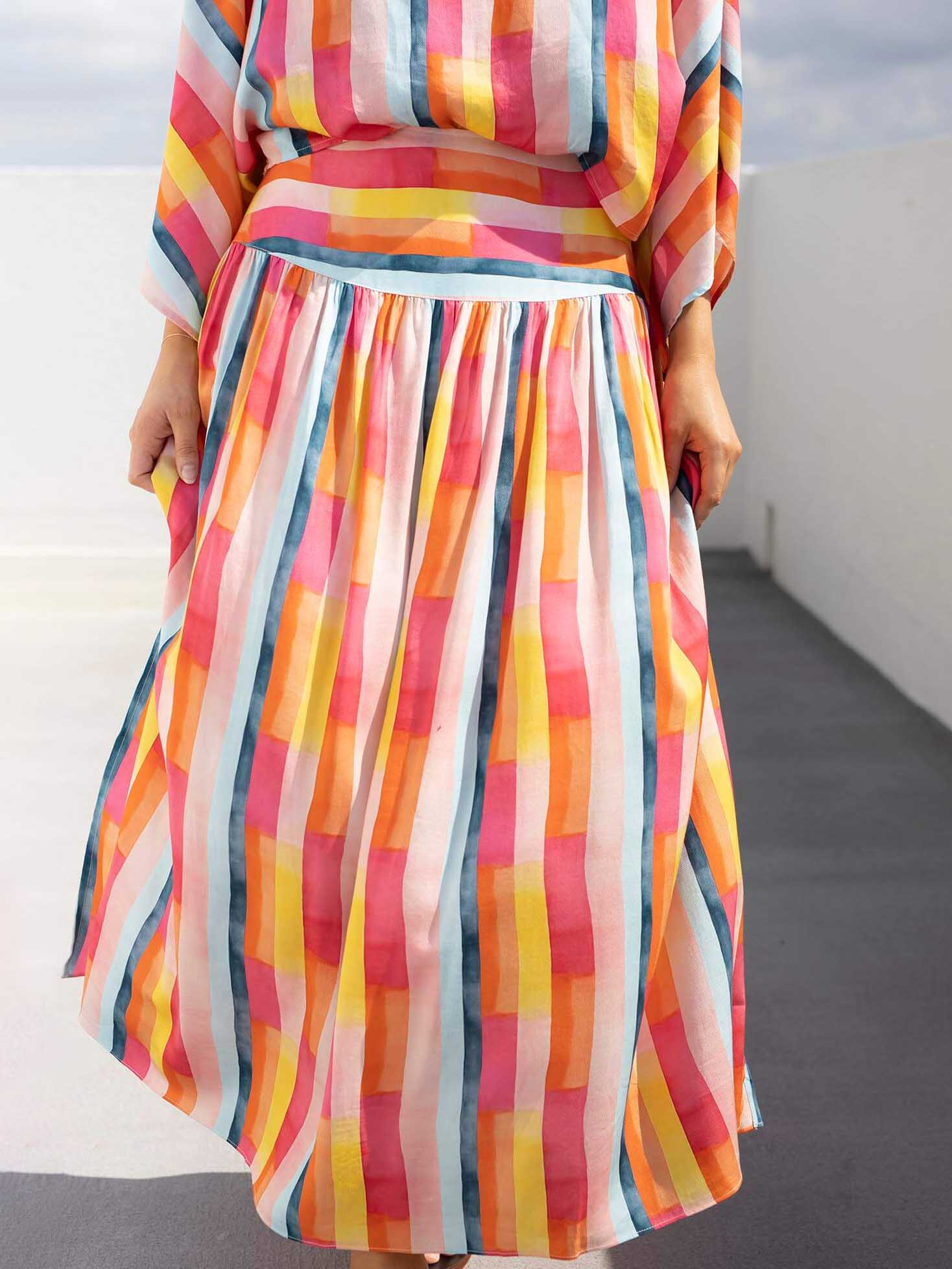 Pair it with the same Painted Stripe Print off-the-shoulder loose top or pair it with heels or sandals for a casual look.