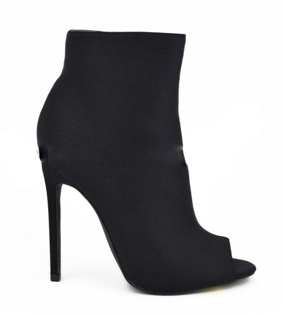 Peep Toe Ultrasuede Ankle Stiletto Boots