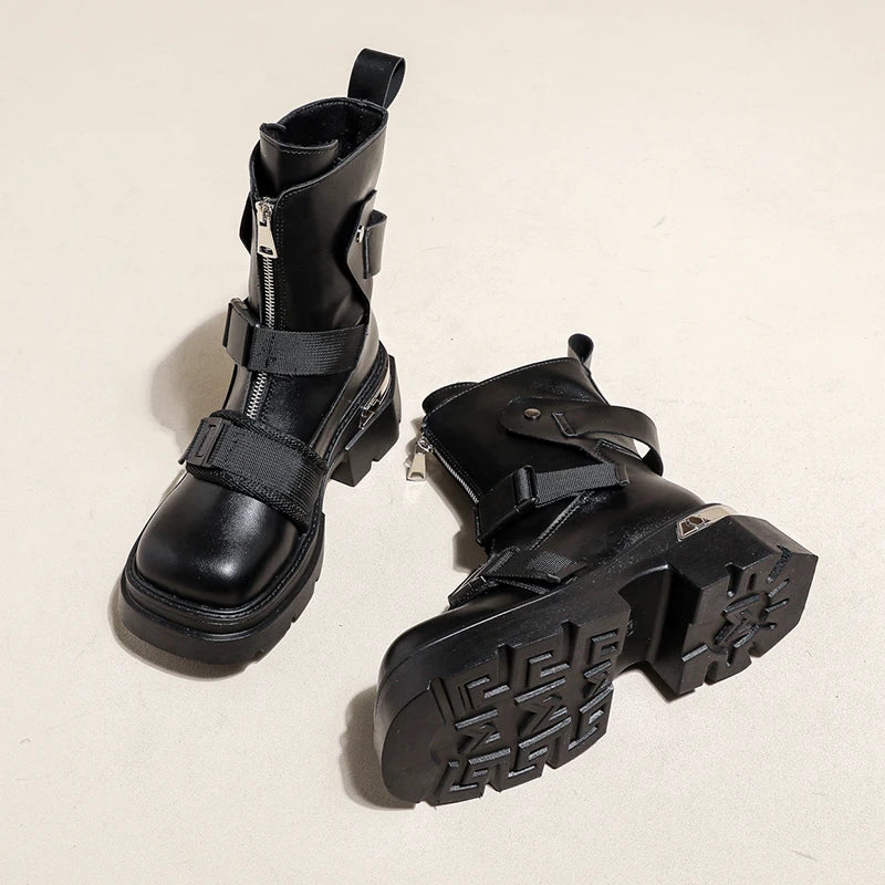 Elevate your style and stand out from the crowd with our Chunky Platform Designer Ankle Boots! The trendy belt buckle accent adds a touch of edgy elegance. while the chunky platform provides added height and comfort. Walk with confidence and make a statement in these must-have boots!