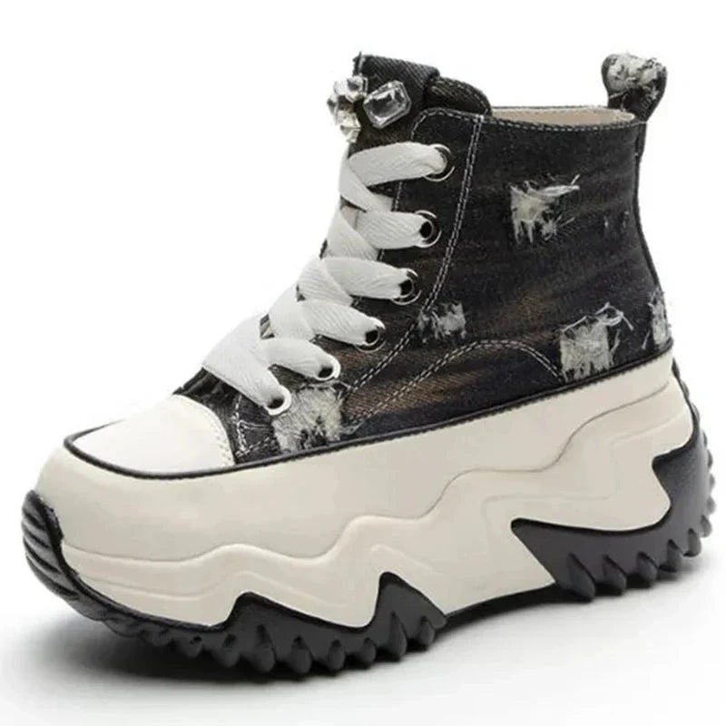 Boost your height and style with our 7cm Canvas Platform Sneakers. Made with durable canvas material. these sneakers provide a 7cm boost and add a touch of edginess to your look. Perfect for those seeking both fashion and functionality.