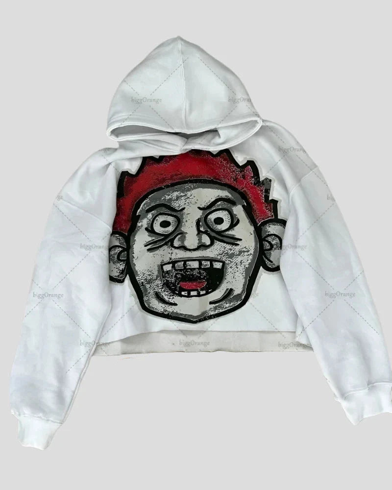 Big Head Cartoon Print - Pullover Hoodie
