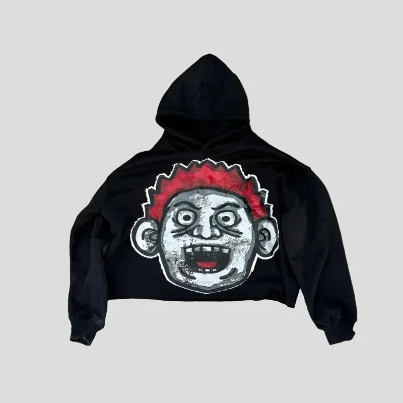 Stay cozy and stylish with this Big Head Cartoon Print pullover hoodie. Designed for all four seasons. this pullover hoodie combines cotton and polyester for a comfortable. durable fit. The hoodie features a hip hop style and a loose. relaxed fit. making it perfect for any casual trip or outing. With a full sleeve length and standard thickness. it's ideal for layering in any weather. The regular-length hoodie includes a classic hooded collar and a striking cartoon print. making it a standout piece in your wardrobe. This pullover hoodie is perfect for anyone looking to add a fun and trendy touch to their everyday style.