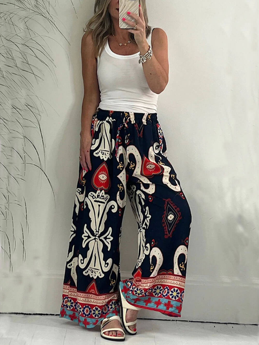 Express Your Style: Whether you're attending a brunch with friends. heading to the office. or enjoying a night out. these Queen of Hearts Printed Pants allow you to express your individual style with elegance.
