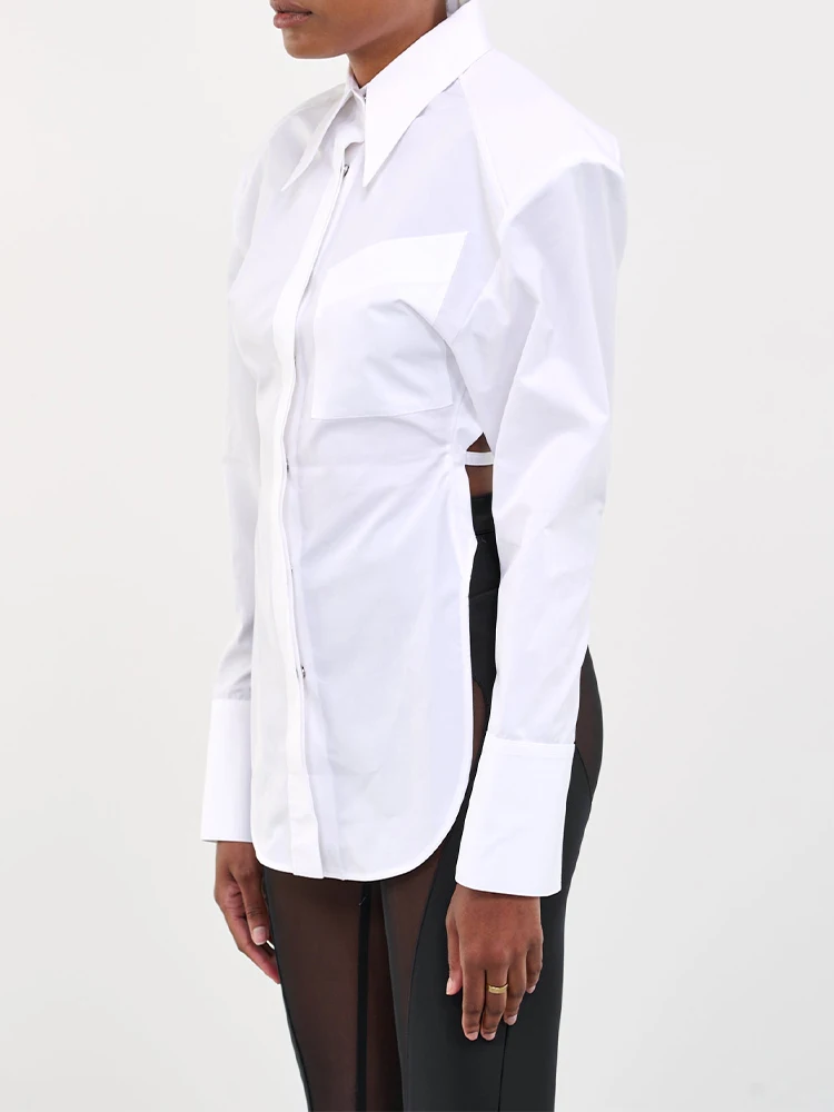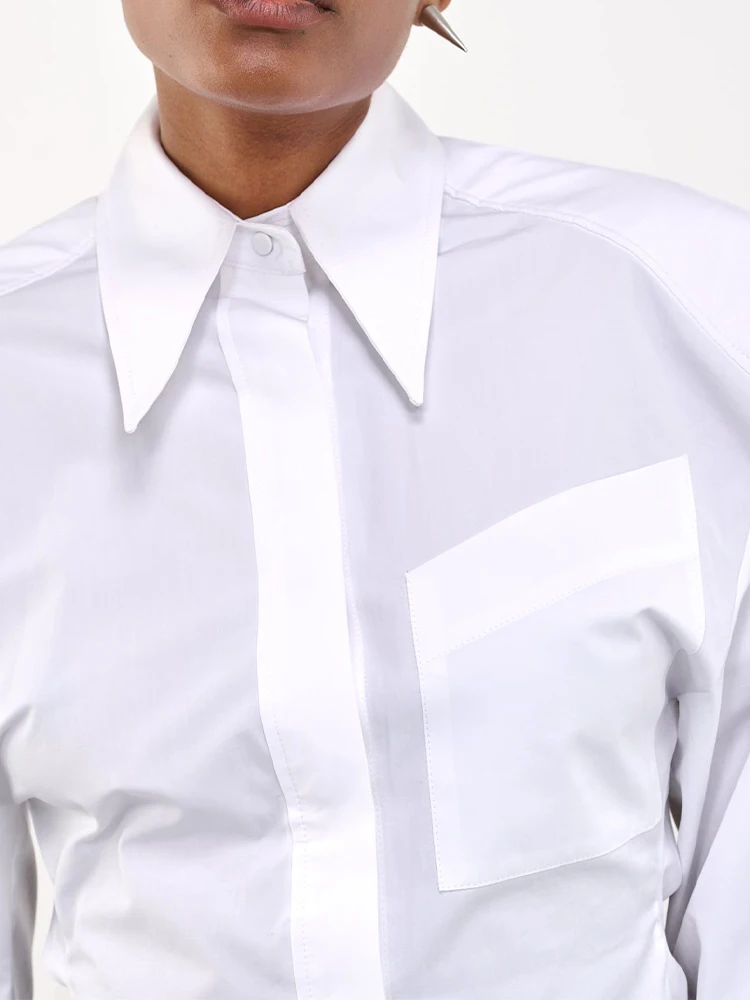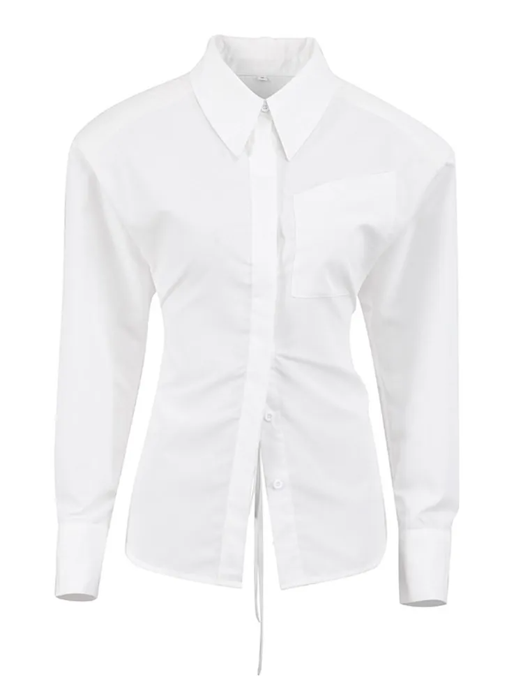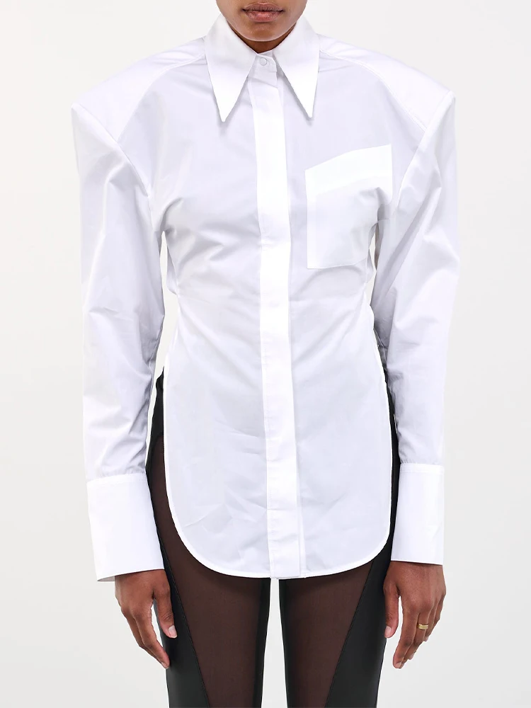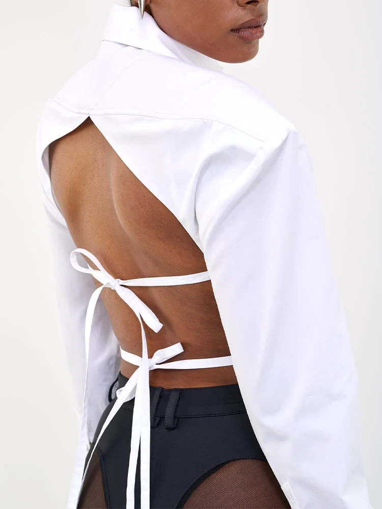 WHITE SHIRT with OVERSIZED SHOULDERS and OPEN BACK LACE UP