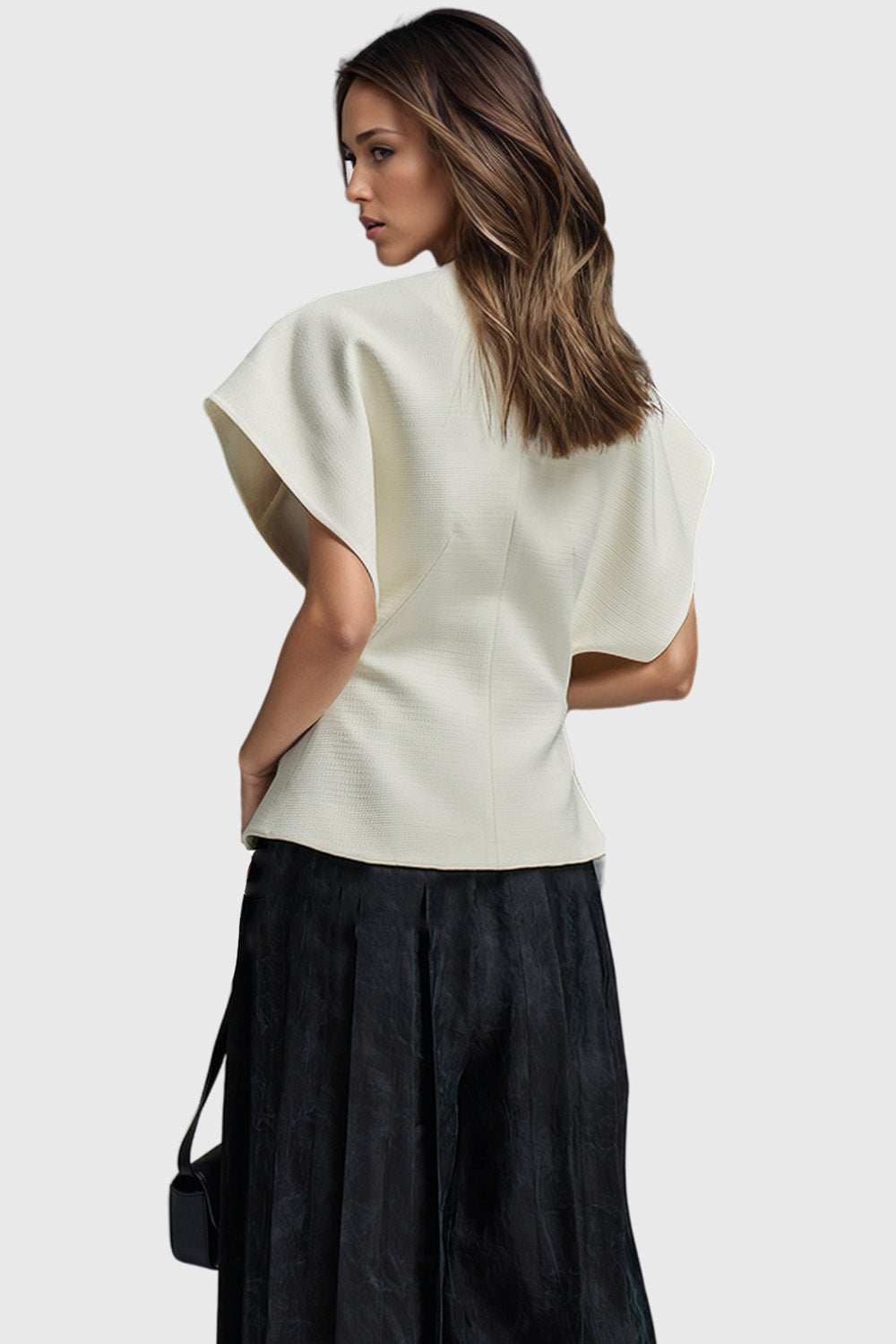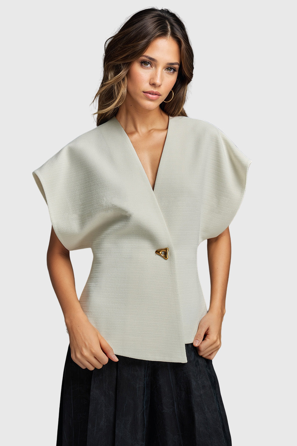 This waistcoat is crafted from a soft fabric and features an irregular closure and short sleeves. as well as a one button closure and cambered waist for a subtly stylish look. Enjoy the comfort and fashion of this unique waistcoat.