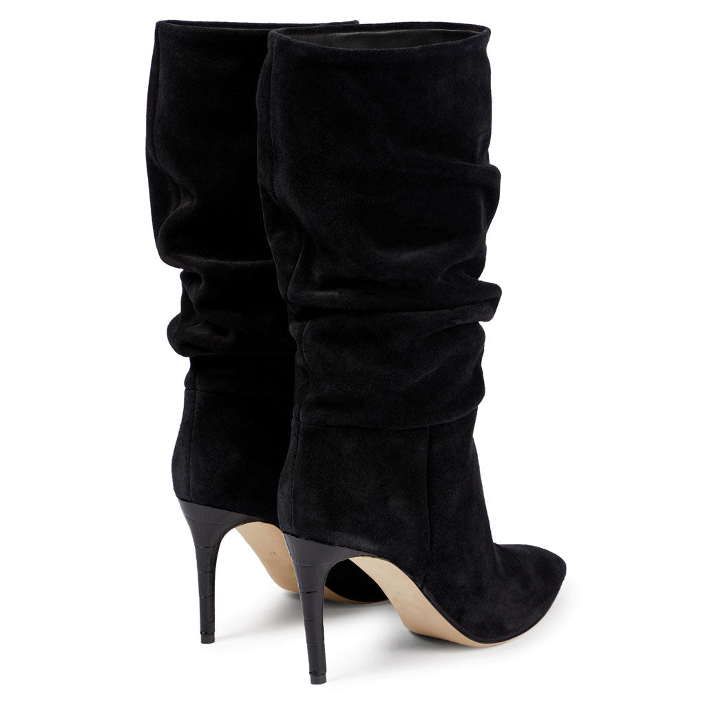 Slouchy Mid Calf Pointed Toe Stiletto Suede Boots - Black