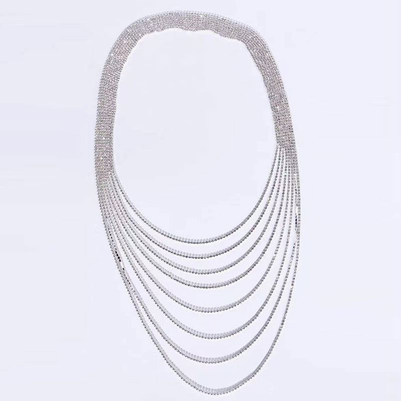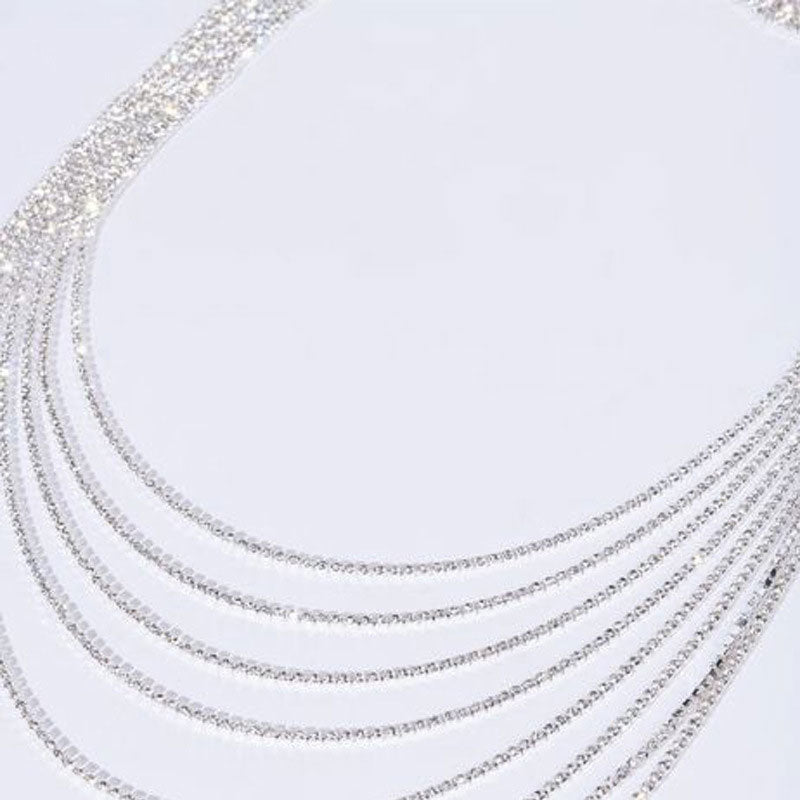 Sparkly Rhinestone Embellished Tassel Layered Backdrop Necklace - Silver