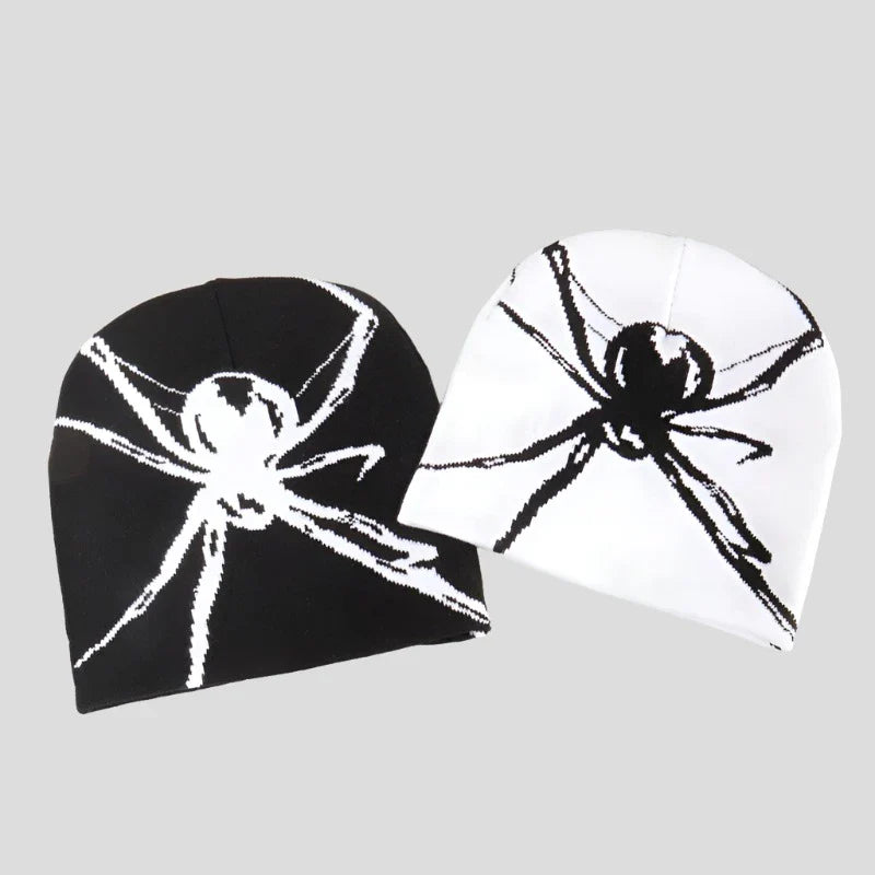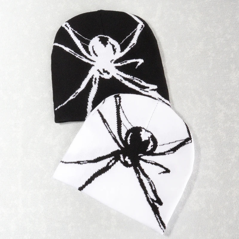 Spider Print Knit Beanie: Y2K Fashion Wool Cap