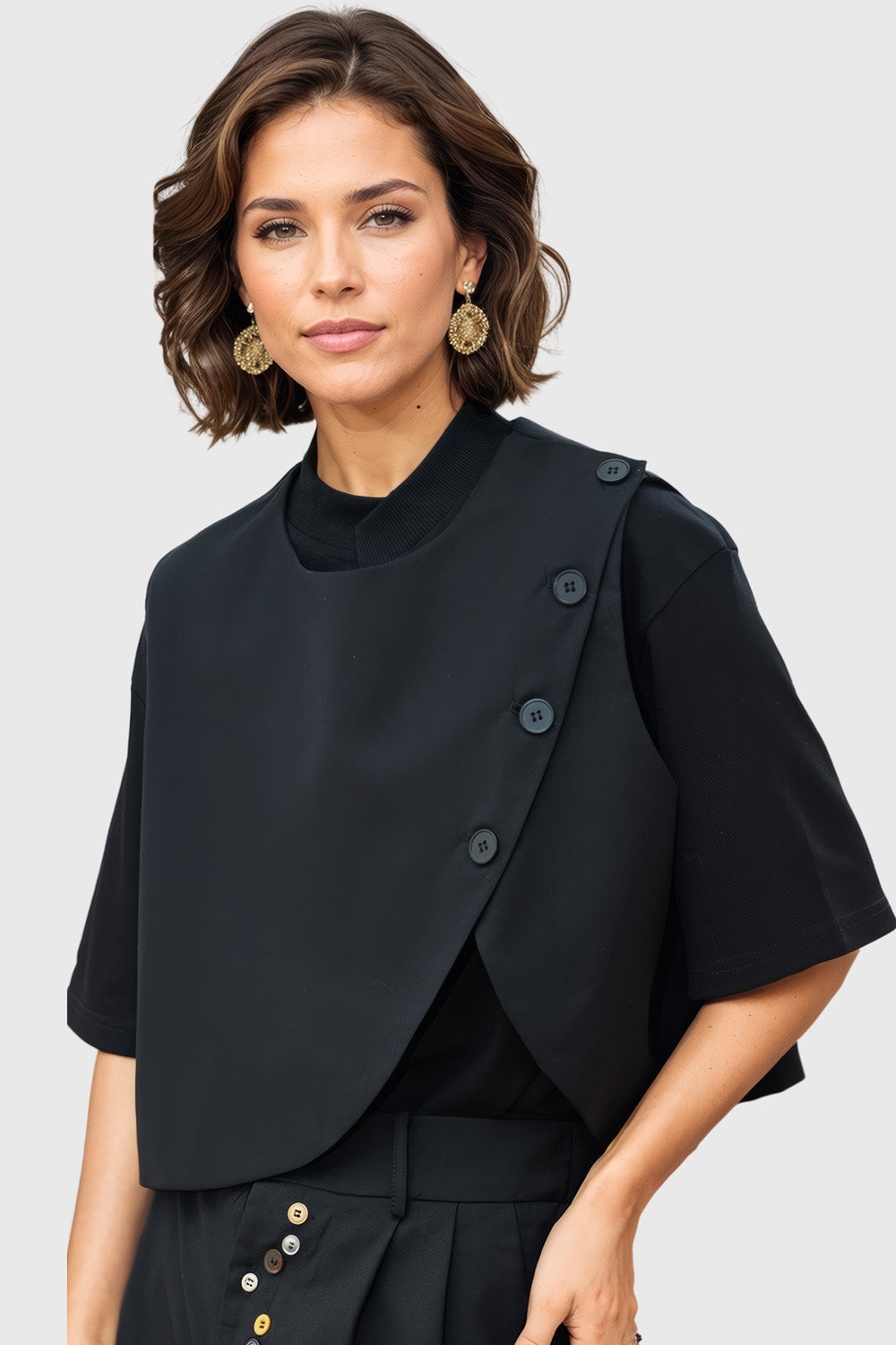 The Straight Irregular Waistcoat is designed with a sleeveless. straight silhouette and round neckline for a modern look. Irregular buttons discreetly fasten for a chic touch.