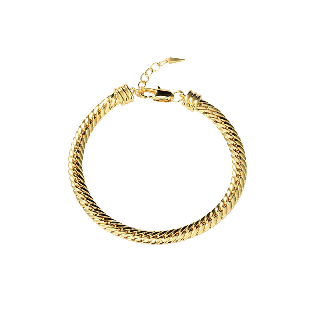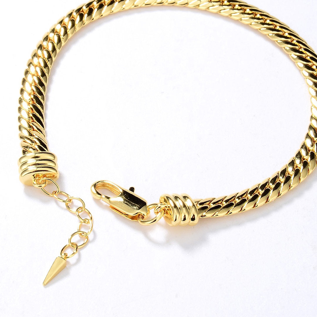 Having a snake-effect inspiration in an open design. this luxury bracelet is the perfect way for everyday accessorizing. This vintage bracelet features twisted chains. a fixed length with a lobster closure. and a gold-tone plated finish. Dress up your oh-so-cool outfit with it to elevate your street look. Our designer jewelry collection also contains many unique bracelets for women. Why not just match your outfit with one?