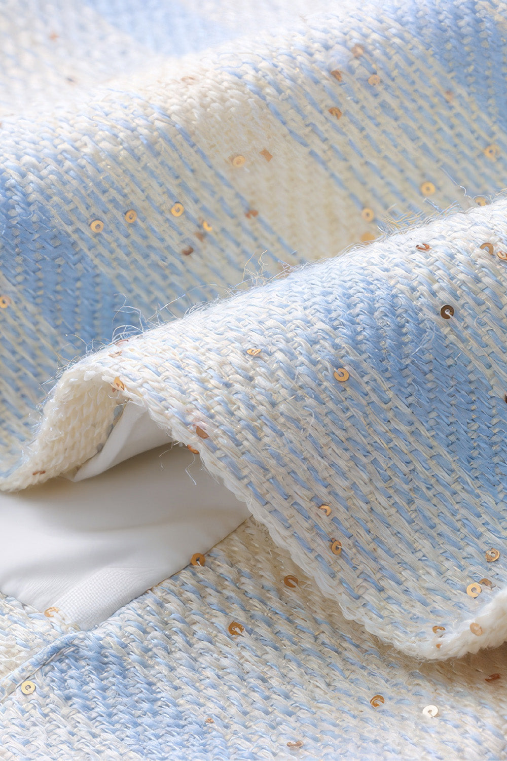 This striped minimalist jacket is the perfect blend of modern comfort and style. Long sleeves. a front closure. and golden snap-buttons make it easy to wear while the padded shoulders and round neck make it look chic.